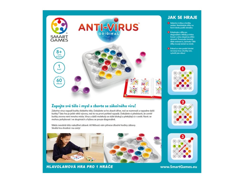 Zapojte své tělo i mysl a zbavte se zákeřného viru! Zákeřný virus napadl buňku lidského těla. Dokážete se ho zbavit dříve, než se rozmnoží a napadne další buňky? Tato hra je ještě větší výzvou, než to na první pohled vypadá. Dokážete si představit, že uvnitř buňky zrovna není mnoho místa. Virus a další molekuly se stále blokují a překážejí si v cestě. Navíc se mohou pohybovat i ve skupinách a hýbou se pouze diagonálně. Nikdo neodolá této nakažlivé zábavě. 60 rébusů vám přinese dlouhé hodiny zábavy. Cestovní váček vám umožní vzít si hru kamkoli s sebou.Doplňkové parametry