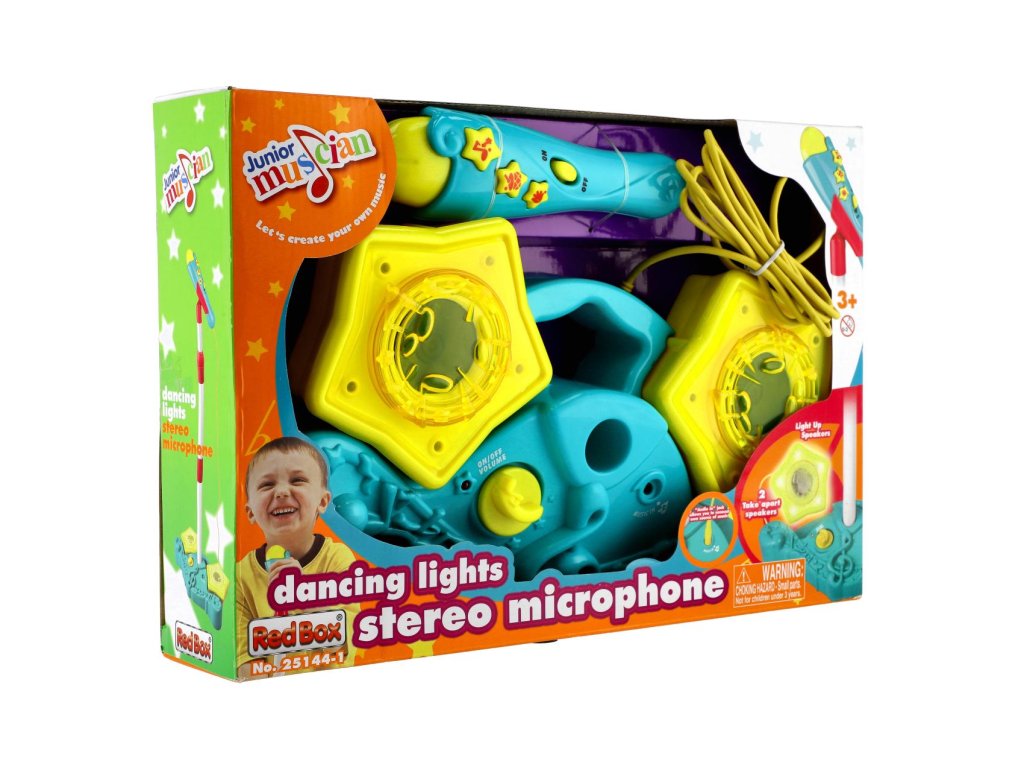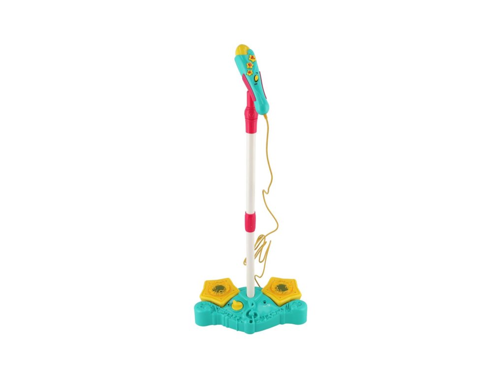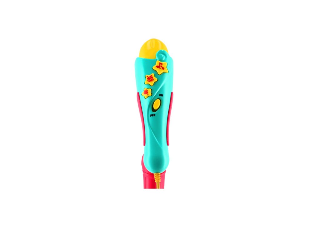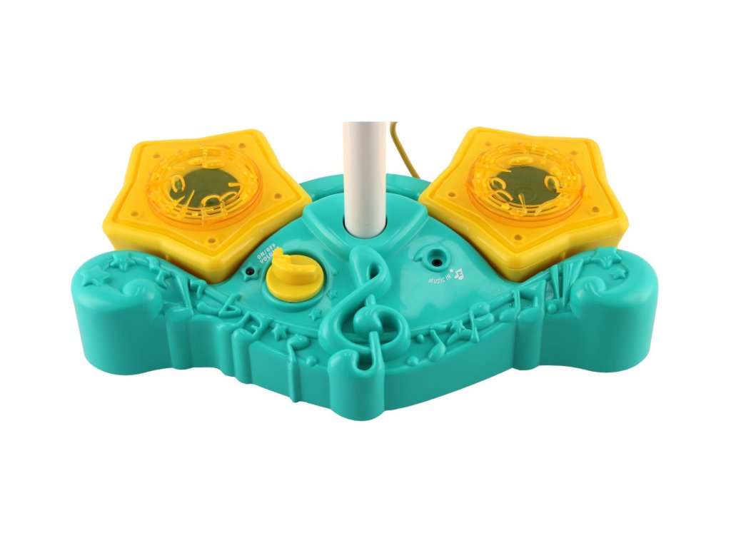 Skvělá zábava pro malé muzikanty. Tento úžasný plastový mikrofon umožní malým muzikantům uspořádat vlastní koncert. Možnost nastavení hlasitosti. Mikrofon se zvukem a světlem. Budete se cítít jako popová hvězda. Skvělý pódiový mikrofon s funkcemi. Možnost nastavení výšky mikrofonu podle výšky dítěte. Baterie 4 x AA nejsou součástí balení.Sestavení: