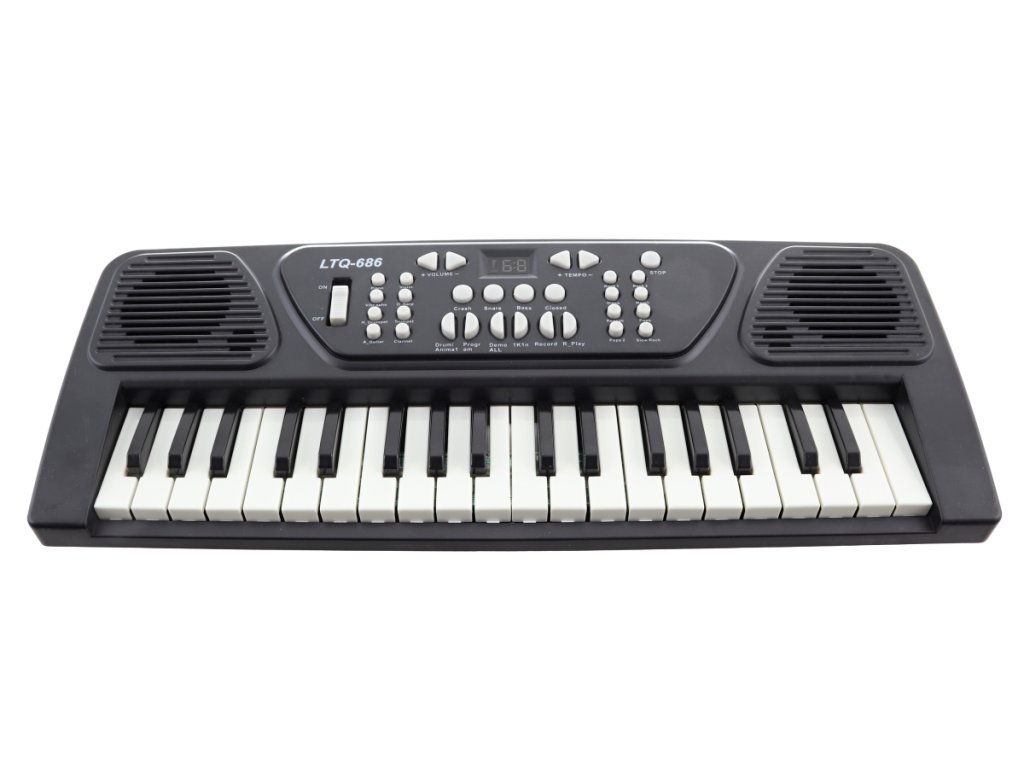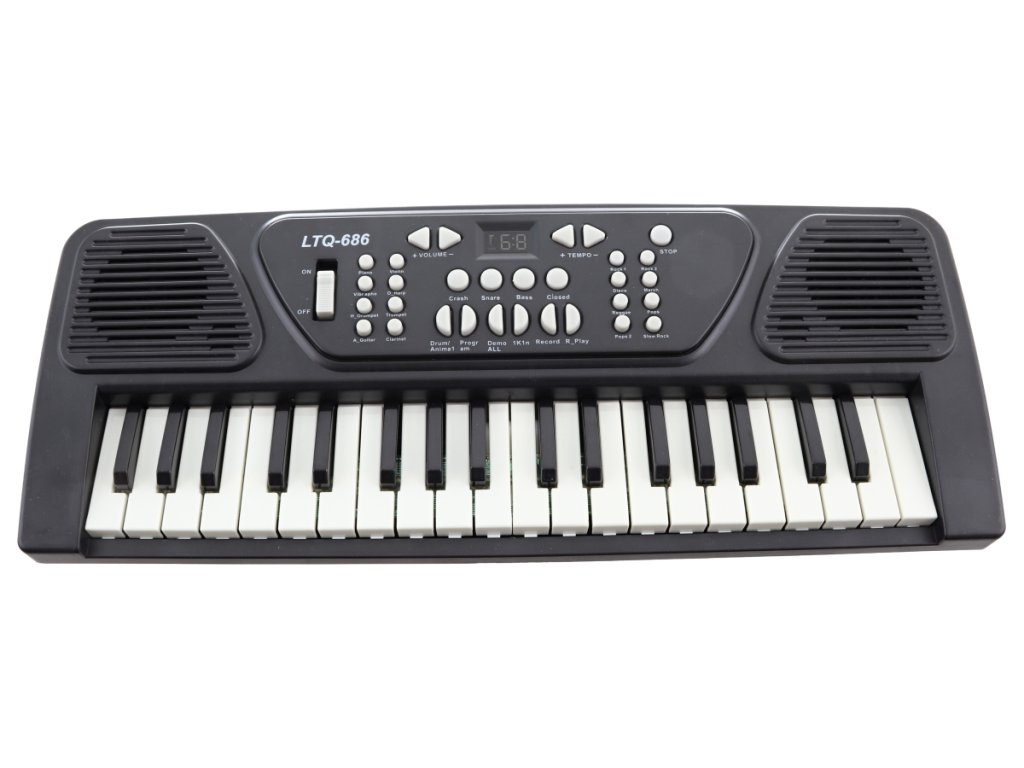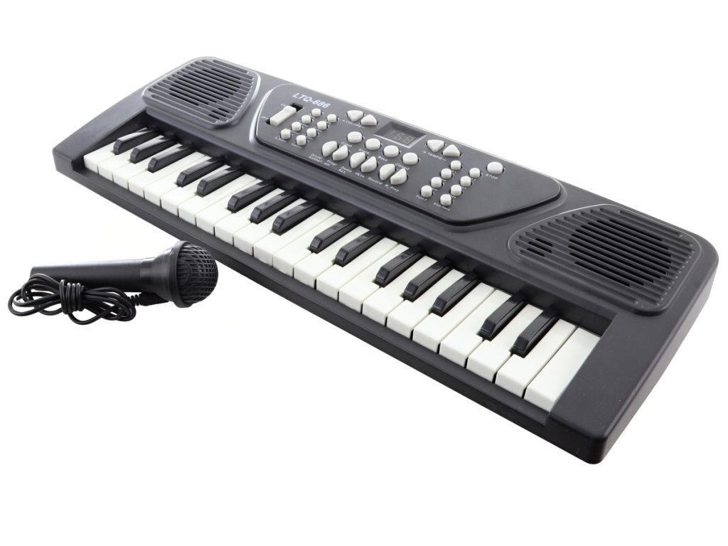 Plastové piano. Na pianu lze kromě klasických tónů také navolit různé podkresové melodie a měnit hudební nástroje. Součástí je také mikrofon a konektor pro připojení USB. Napájení na baterie (4x AA - nejsou součástí) nebo pomocí adaptéru do zásuvky. Rozměry piana cca 42,5 x 16,5 x 5,5 cm. Rozměry balení cca 47 x 17 x 5,5 cm. Věk 8+Doplňkové parametry