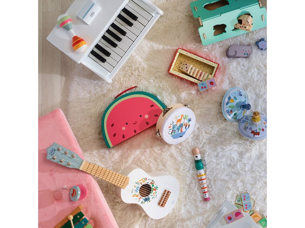 Hlavní vlastnosti: prohlubuje lásku k hudbě a rytmikurozvíjí jemnou motoriku a kreativitustimulace sluchového vnímáníkvalitní zpracovánídesign Sarah Betzbezpečné a vzdělávací hračky Sarah Betz vyrostla v Německu, nyní však tvoří ve Francii