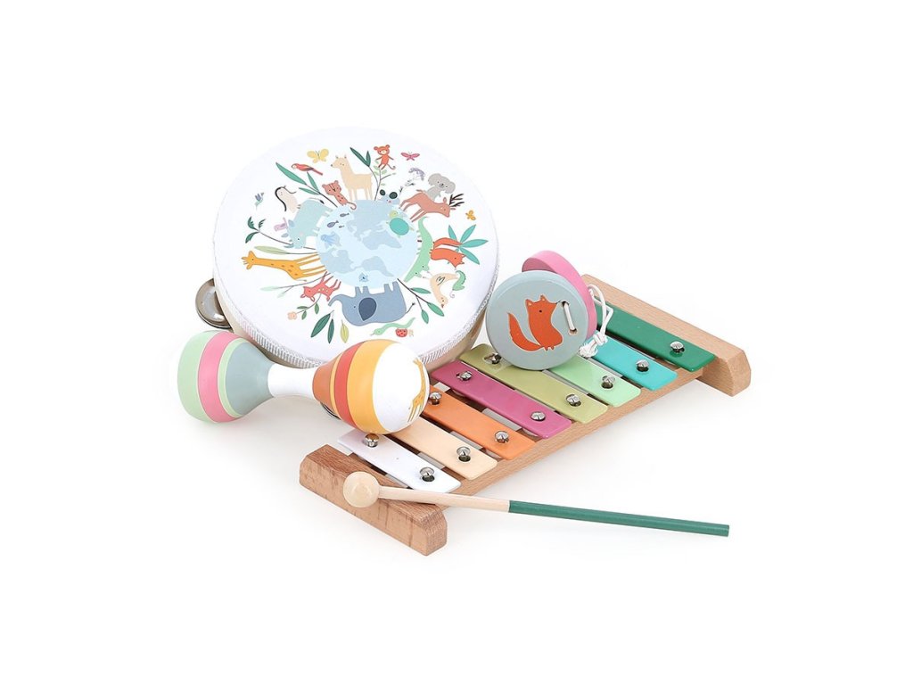 Perfektní první krůčky do světa hudby, zábavy a fantazie! Nástroje vydávají příjemné zvuky a rozvíjejí vztah k hudbě, ale nejsou to profesionální hudební nástroje