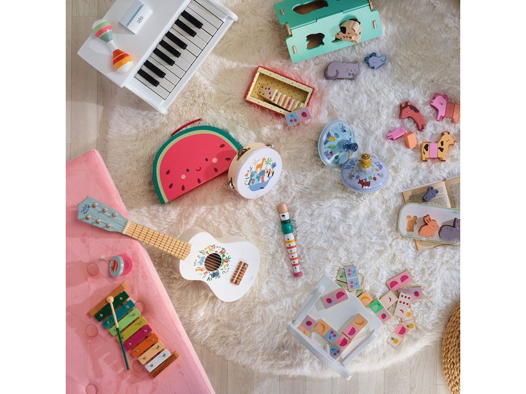 Každé dítě sní o tom, že se stane hvězdou a zahraje nezapomenutelné kytarové sóloTato krásná dřevěná kytara, jemně ilustrovaná umělkyní Sarah Betz, je ideální pro děti od 3 let, které chtějí napodobovat dospělé a vydat se na svou hudební cestu.Vyrobena z masivního dřeva, s přizpůsobenou velikostí a náhradními nylonovými strunami, nabízí čisté tóny bez elektroniky a umožňuje dětem objevovat radost z hudby přirozeným způsobem