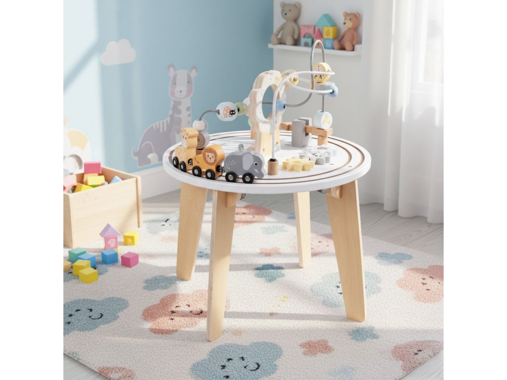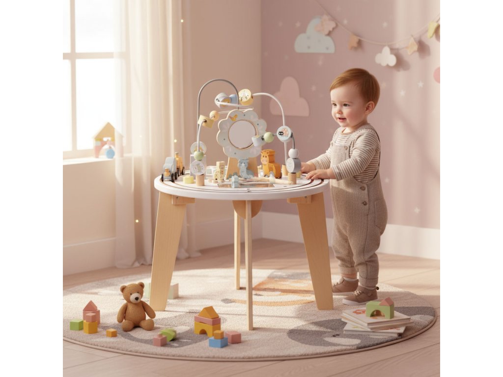 Vzdělávací stolek ECOTOYS je dokonalým společníkem při každodenní hře doma i v mateřské školce. Díky kompaktním rozměrům se snadno vejde do dětského pokoje, koutku na hraní či čekárny. Podporuje učení formou zábavy – děti se seznamují s barvami, tvary i zvířátky. Trénují pozornost, trpělivost a rozvíjejí své dovednosti.