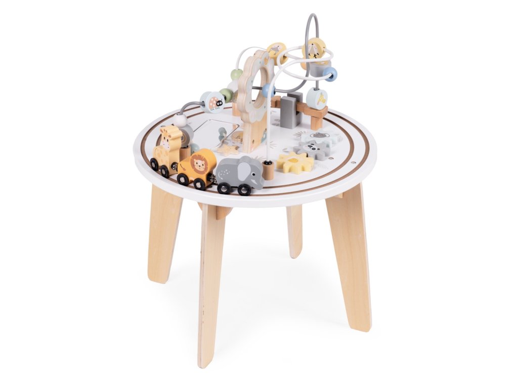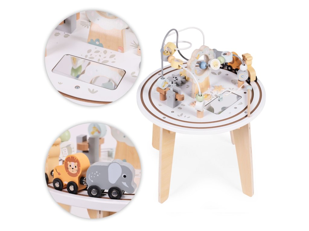 Dřevěný vzdělávací stolek 5v1 Montessori ECOTOYSDřevěný montessori stolek ECOTOYS je ideální hračka pro děti od 1 roku, která přirozeně rozvíjí motoriku, představivost a logické myšlení. Díky svému promyšlenému designu nabízí hned 5 různých aktivit v jedné hračce. Děti mohou objevovat, zkoumat a hrát si každý den trochu jinak.