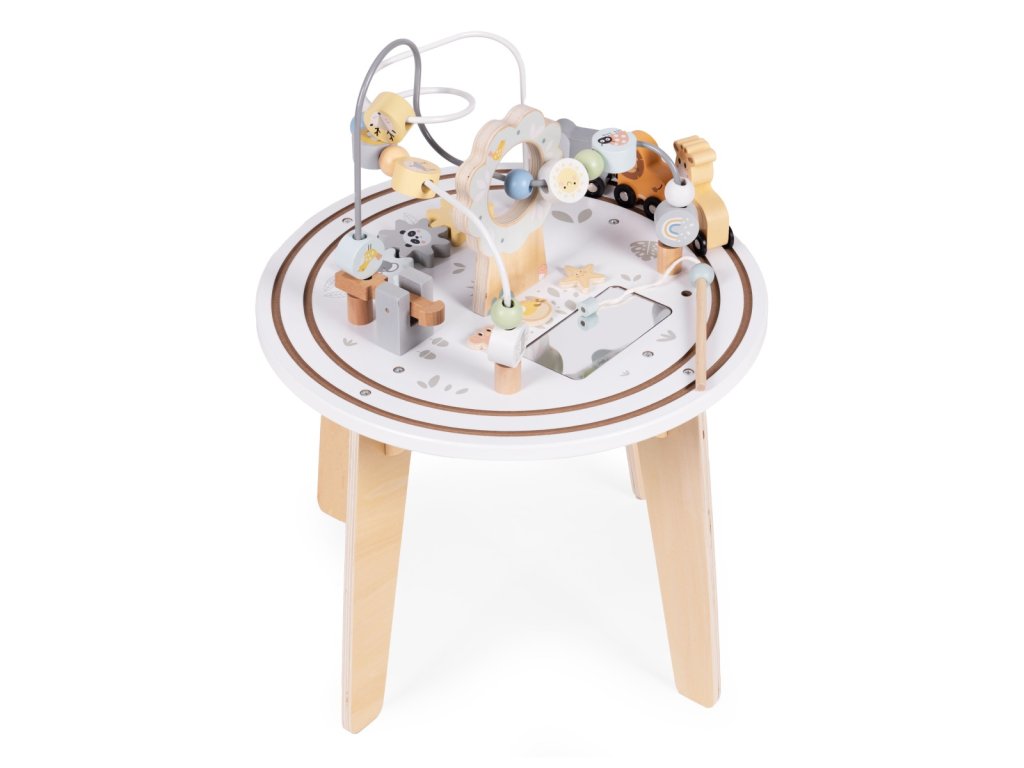 Zrcátko uprostřed stolku přitahuje pozornost dítěte a podporuje vnímání sebe sama i rozvoj zraku.
