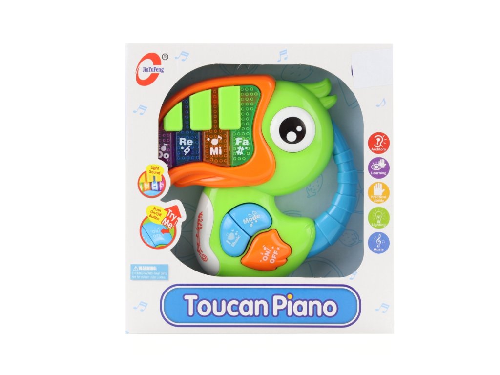 Plastové piánko ve tvaru tukana. Napájení na 2 AA baterie (nejsou součástí balení). Rozměry piánka cca 16 x 15 cm. Rozměry balení cca 19 x 20,5 x 5 cm. Věk 3+Doplňkové parametry
