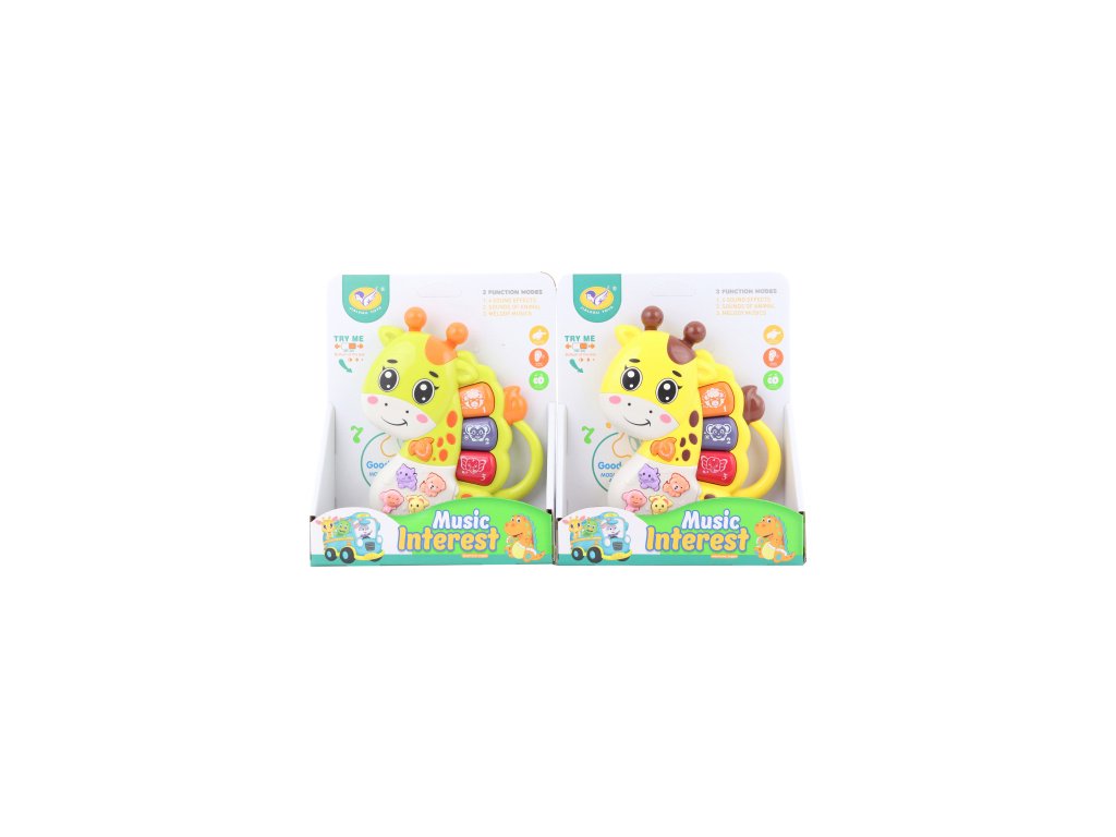 Plastové piánko ve tvaru žirafy. Hraje a vydává zvuky zvířátek. Napájení na 2 AAA baterie (jsou součástí balení). Rozměry piánka cca 12 x 16 cm. Rozměry balení cca 16 x 19 x 5 cm. Věk 12m+Doplňkové parametry