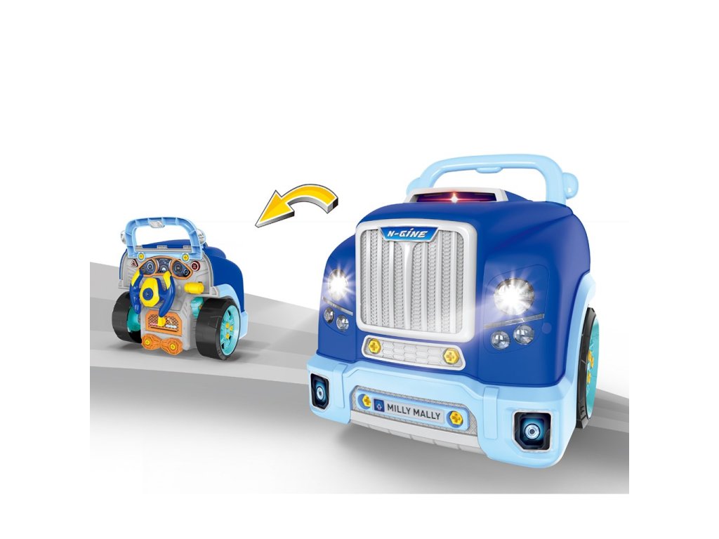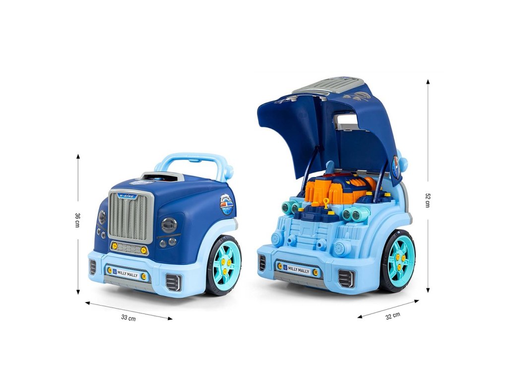 Hračka obsahuje světelné a zvukové efekty, které dodávají hernímu zážitku vzrušení a realismus. Díky sadě nářadí a pohyblivým částem mohou děti opravovat auta, měnit pneumatiky, utahovat šrouby a učit se základy mechaniky prostřednictvím akce. Rozvíjí manuální dovednosti a logické myšlení a podporuje učení hrou.