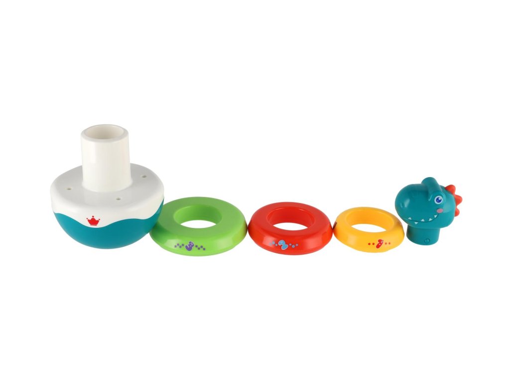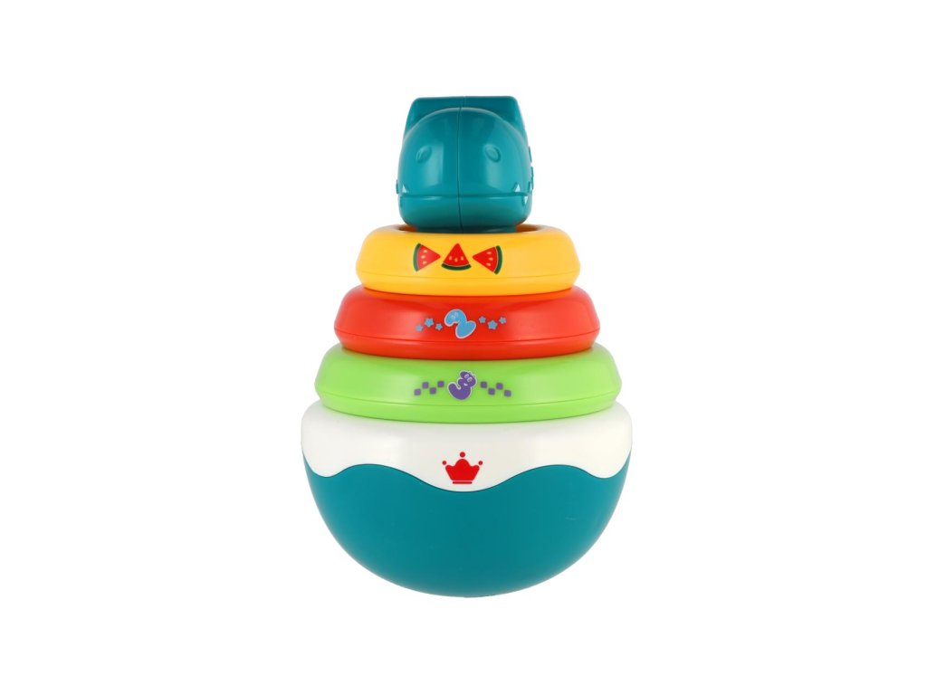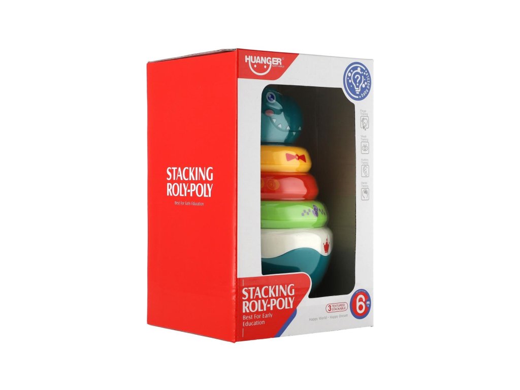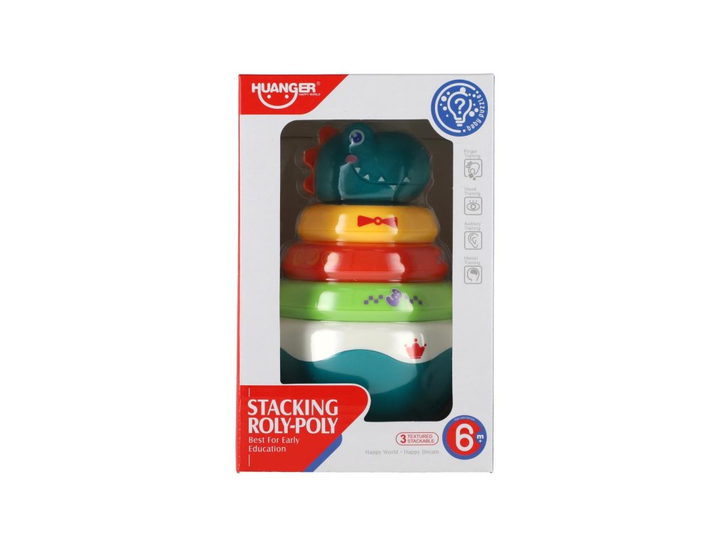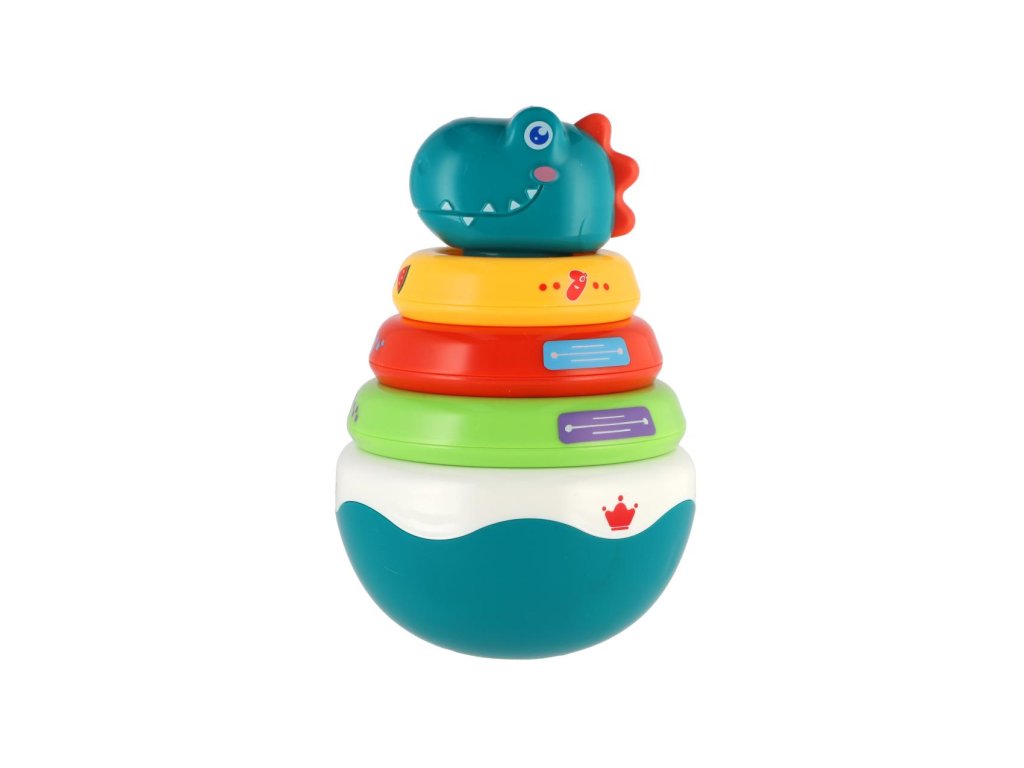 Roly Poly dinosaurus plast 16cm skládanka pyramida s kroužky se zvukem v krabičce 13x20cm 6m+