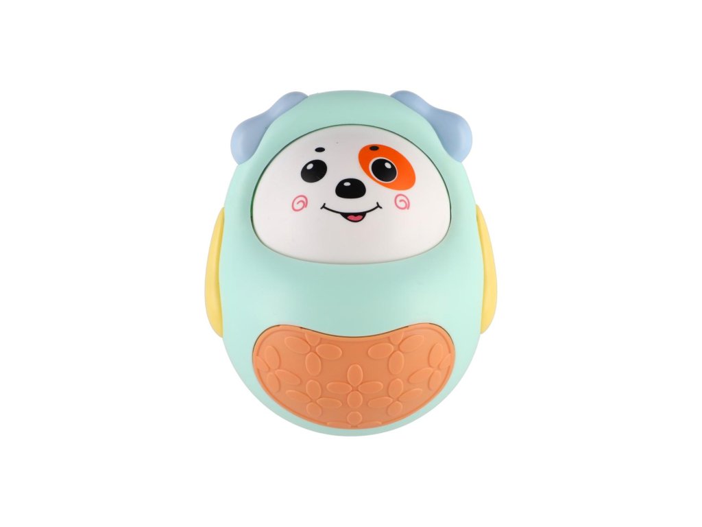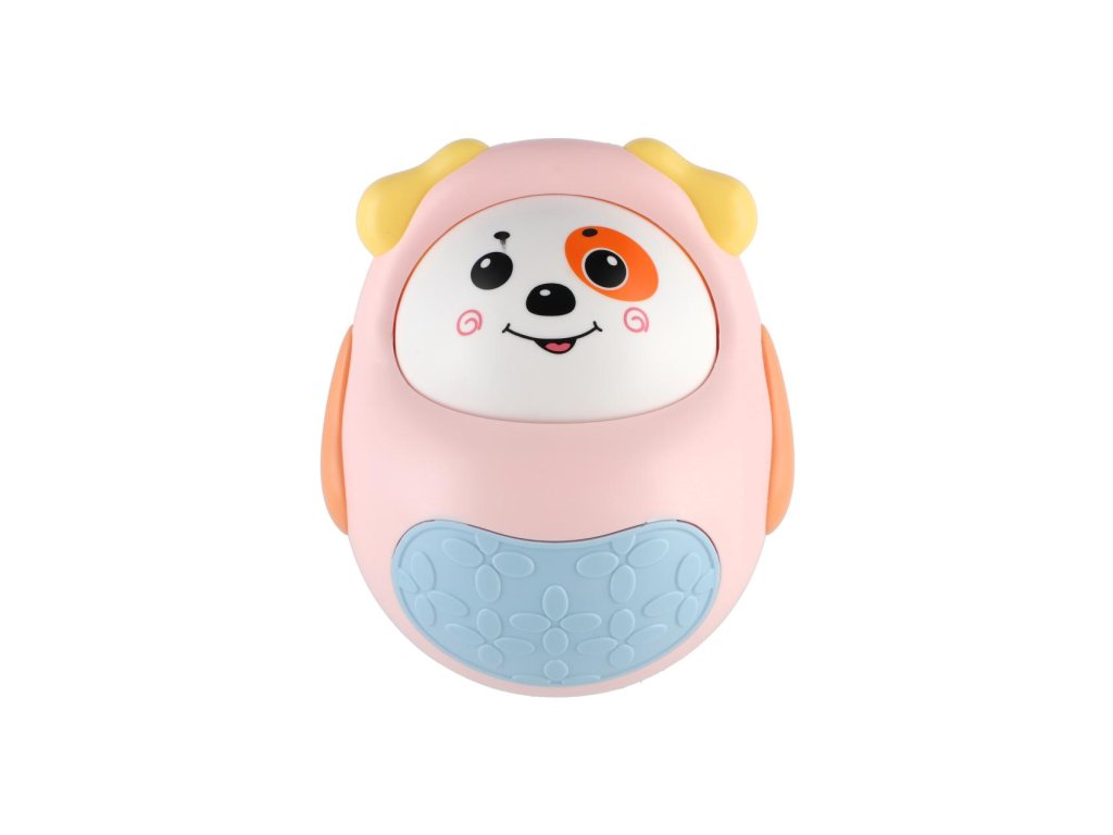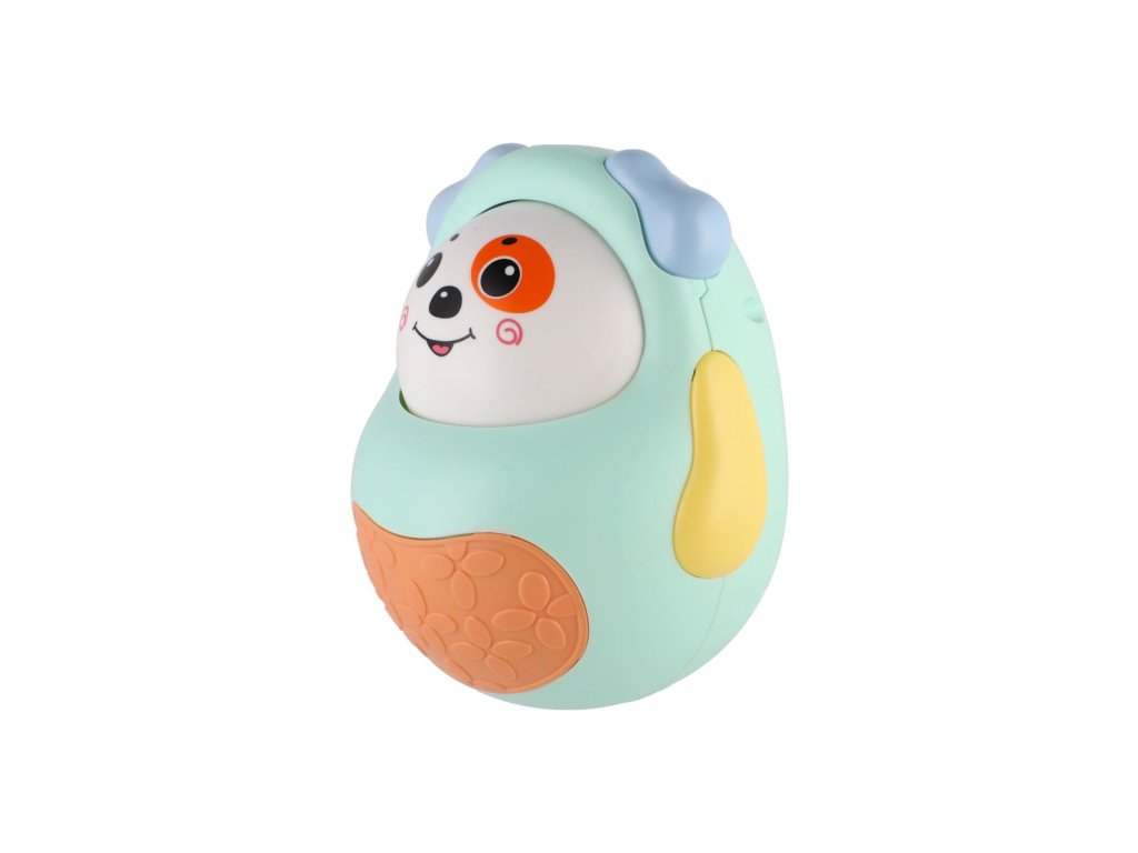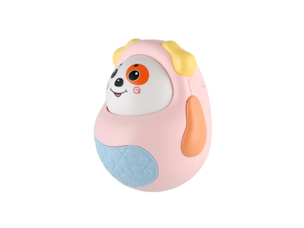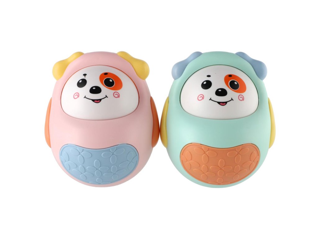 Veselý pejsek, který se nikdy nepřevrátí! Tato roztomilá plastová hračka ve stylu „roly poly“ se po postrčení houpe ze strany na stranu a vydává jemné zvuky, které zaujmou pozornost nejmenších dětí. Pomáhá rozvíjet sluch, zrak a koordinaci pohybů.Velikost hračky: 10 cm