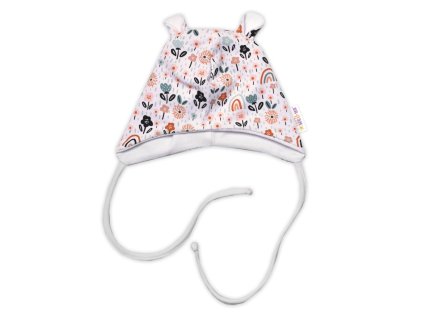 Baby Nellys Kojenecká čepička s oušky na zavazování - Palouček, bílá