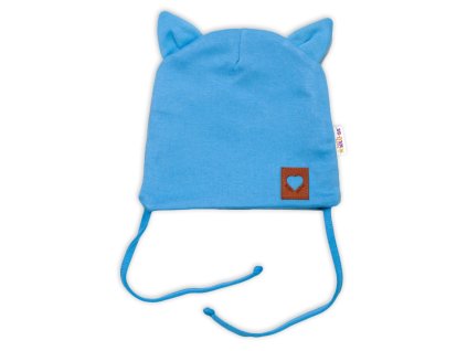 Baby Nellys Bavlněná dvouvrstvá čepice s oušky na zavazování TEDDY - modrá