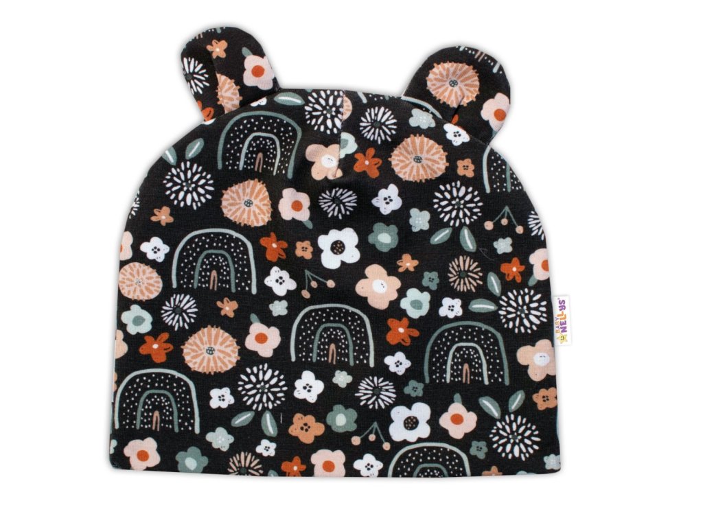 Baby Nellys Dvouvrstvá čepice s oušky + komínek Medvědi, hnědá/smetanová