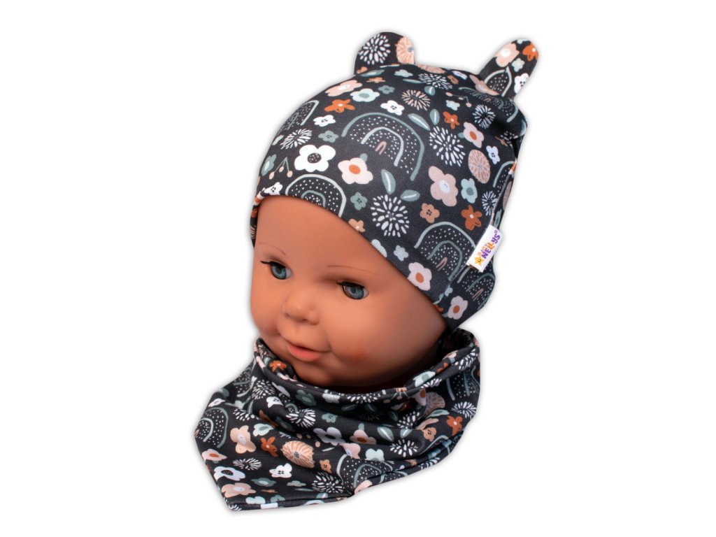 Baby Nellys Dvouvrstvá čepice s oušky + šátek Palouček, grafit