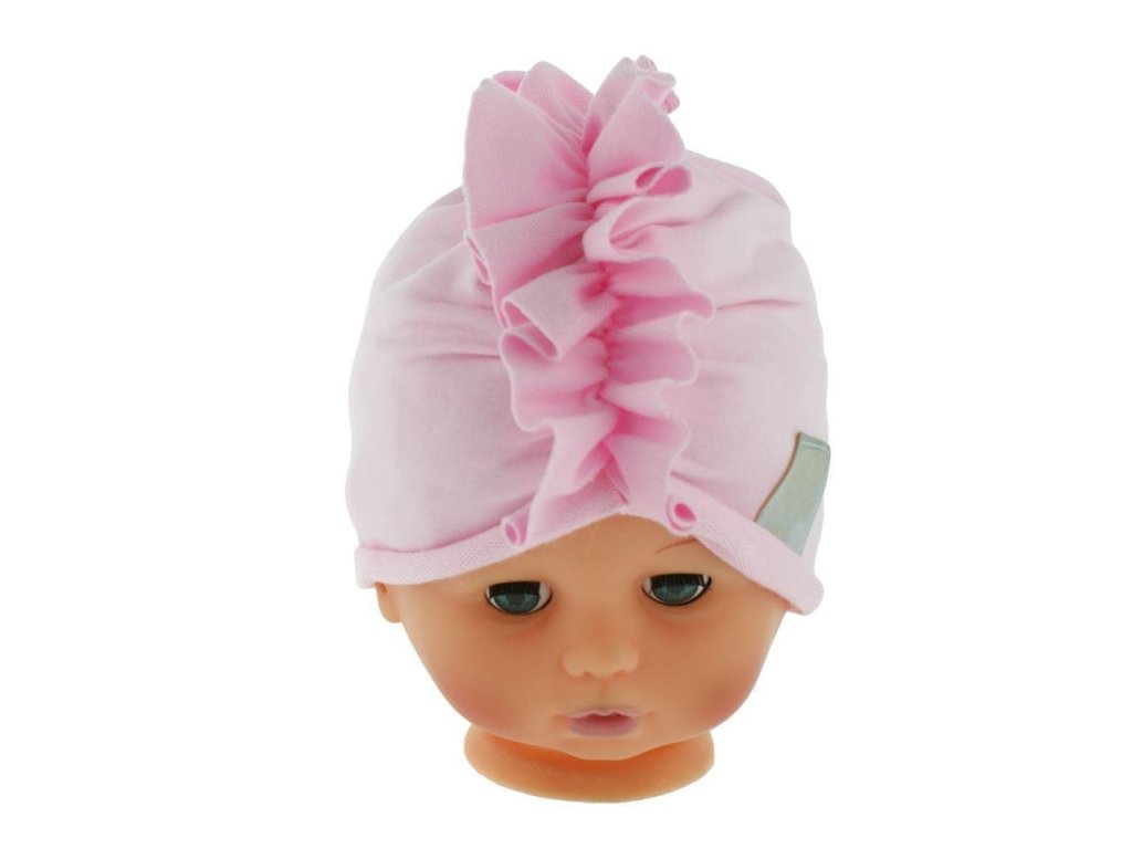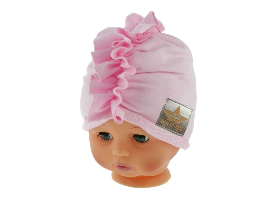 Baby Nellys Jarní/podzimní bavlněná čepice - turban, sv. růžová