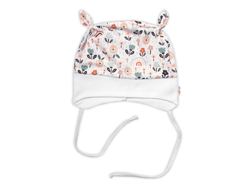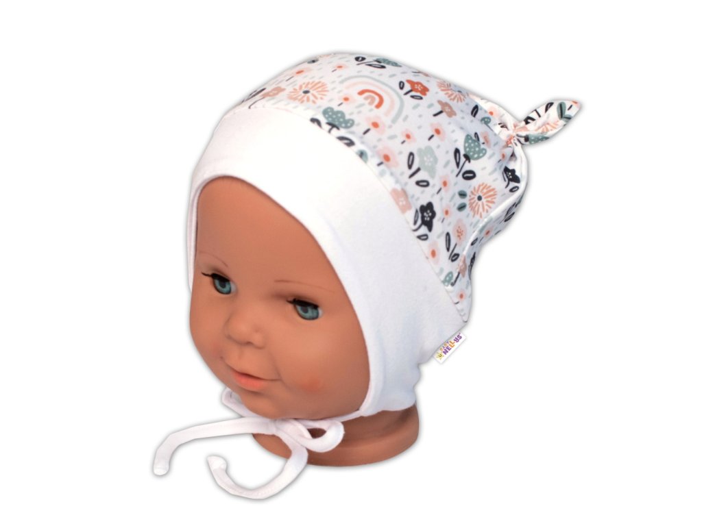 Baby Nellys Kojenecká čepička uzlíček na zavazování - Palouček, bílá