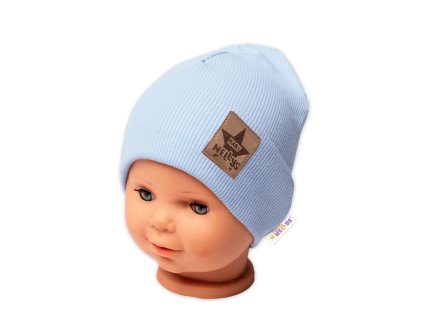Baby Nellys Žebrovaná dvouvrstvá čepice s lemem - sv. modrá