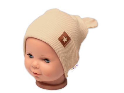 Baby Nellys Žebrovaná dvouvrstvá čepice s oušky TEDDY - béžová