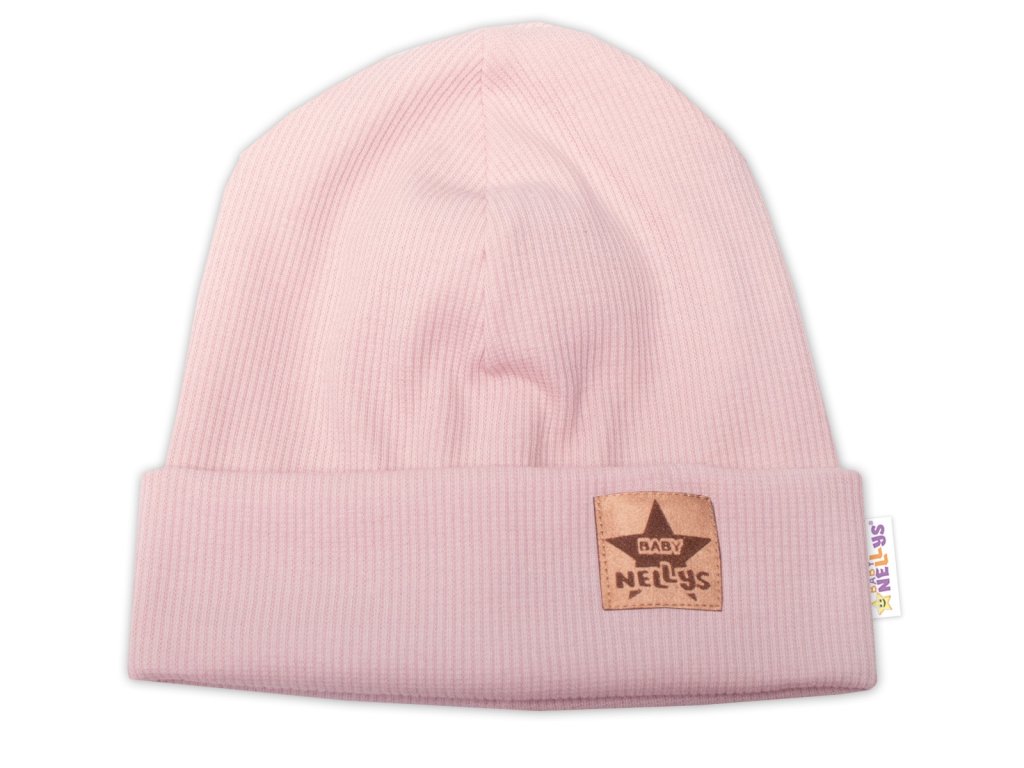 Baby Nellys Žebrovaná dvouvrstvá čepice s lemem - pudrová