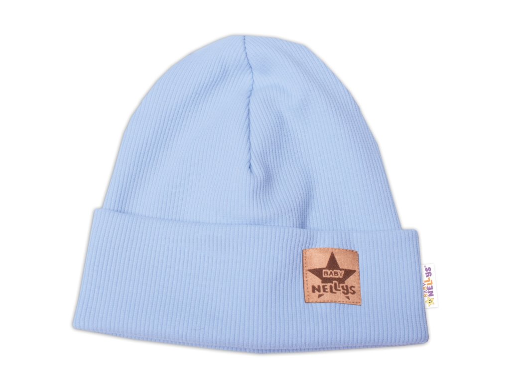 Baby Nellys Žebrovaná dvouvrstvá čepice s lemem - sv. modrá