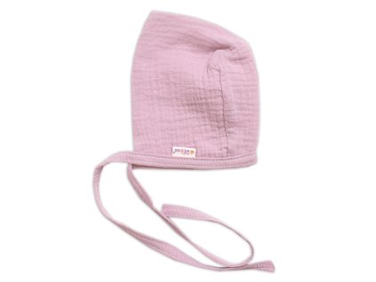 Mušelínová čepička na zavazování bonetka Girl, Hand Made, pudrová, růžová