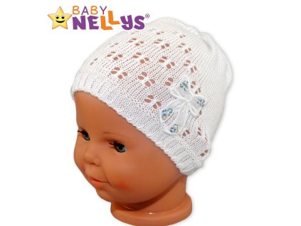 Háčkovaná čepička Mašle Baby Nellys ® - s flitry - bílá