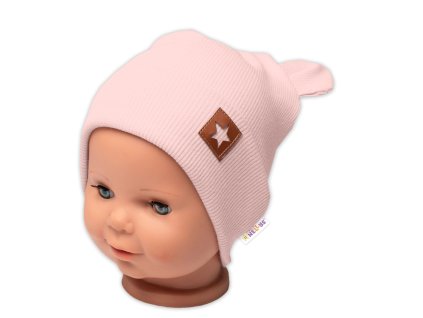 Baby Nellys Žebrovaná dvouvrstvá čepice s lemem - pudrová