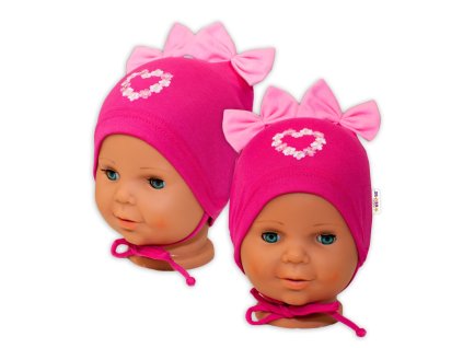 Bavlněná čepička na zavazování Baby Nellys s mašličkami - tm. růžová