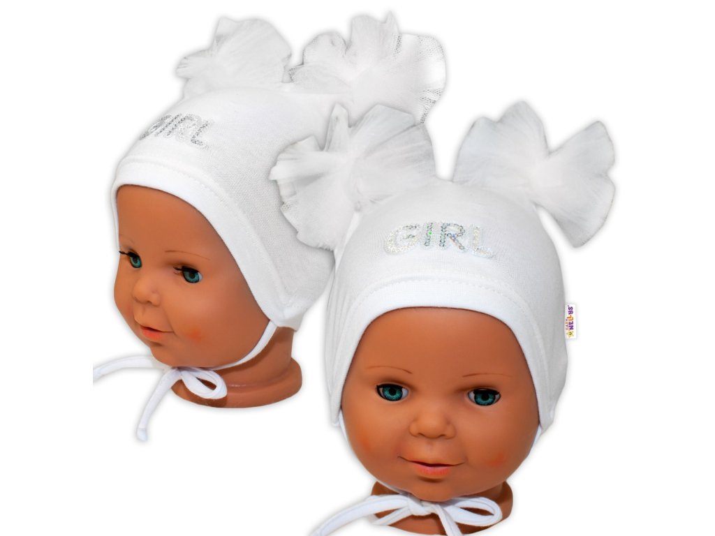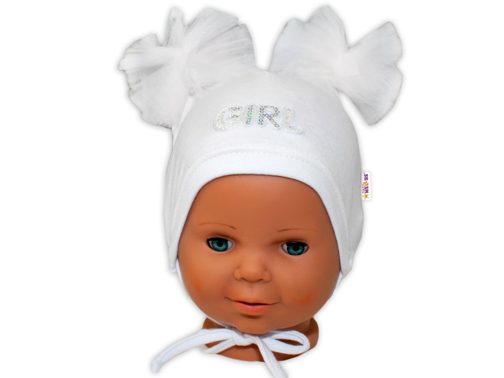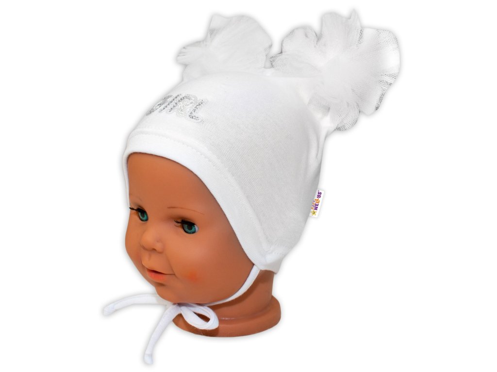 Bavlněná čepička na zavazování Baby Nellys s mašličkami Tutu - bílá