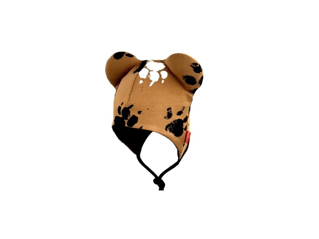 Bexa dvouvrstvá čepice na zavazování s oušky + šátek - Tlapky, hnědá