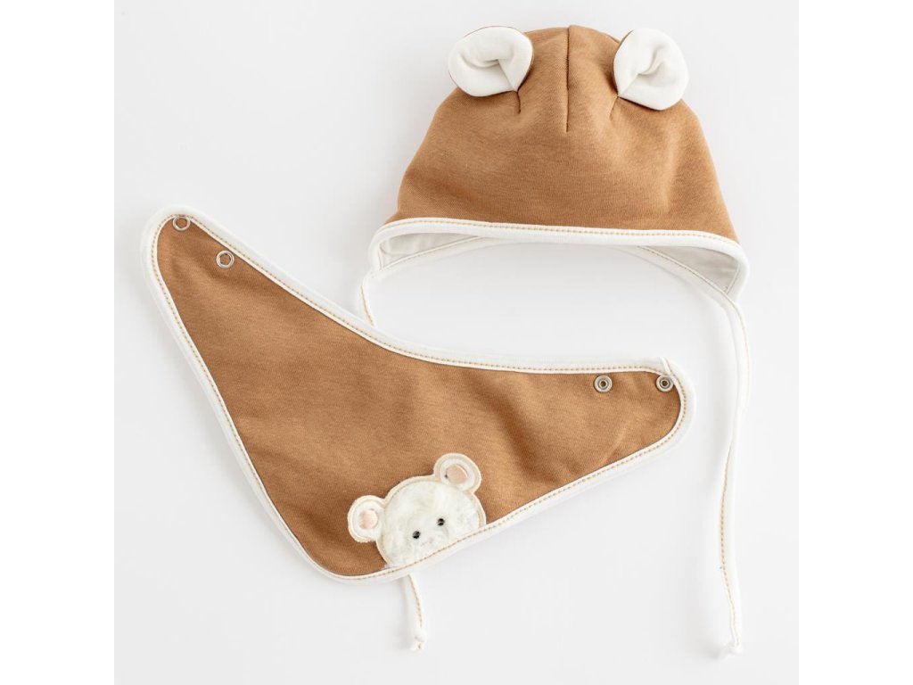 Jarní kojenecká čepička s šátkem na krk New Baby Sebastian hnědá (vel. 56-86)