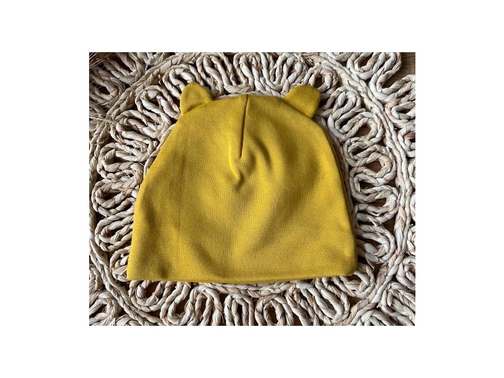 Kojenecká čepička s oušky Mamatti, Balón - hořčicová