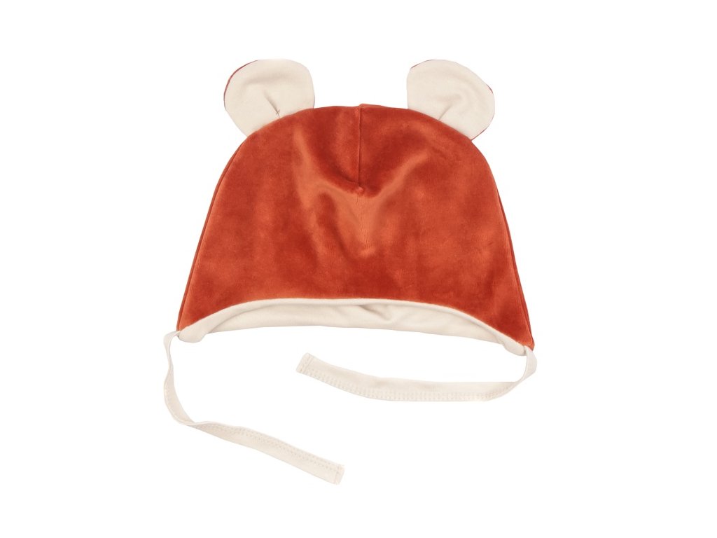 Mamatti Čepička s oušky na zavazování Velvet, Baby Fox - hnědá
