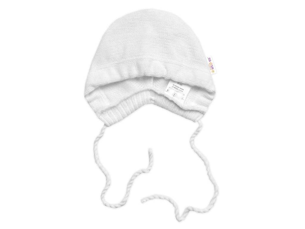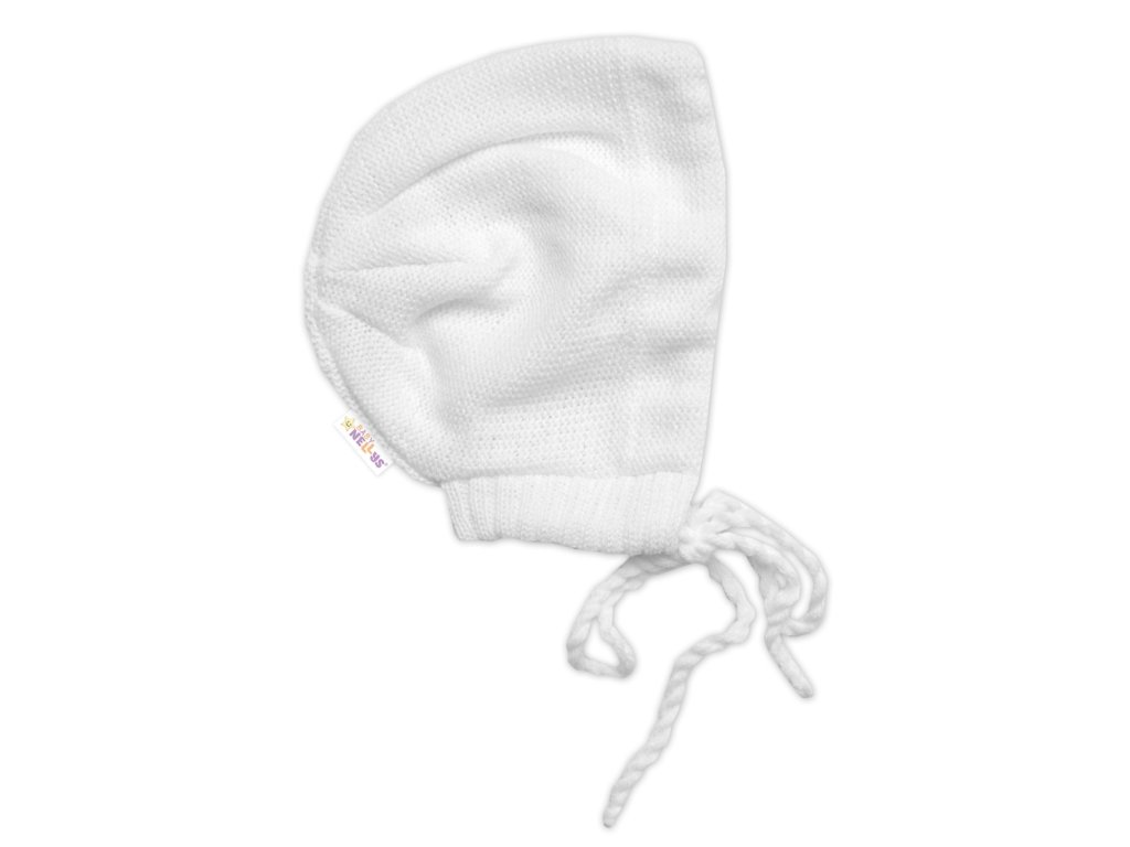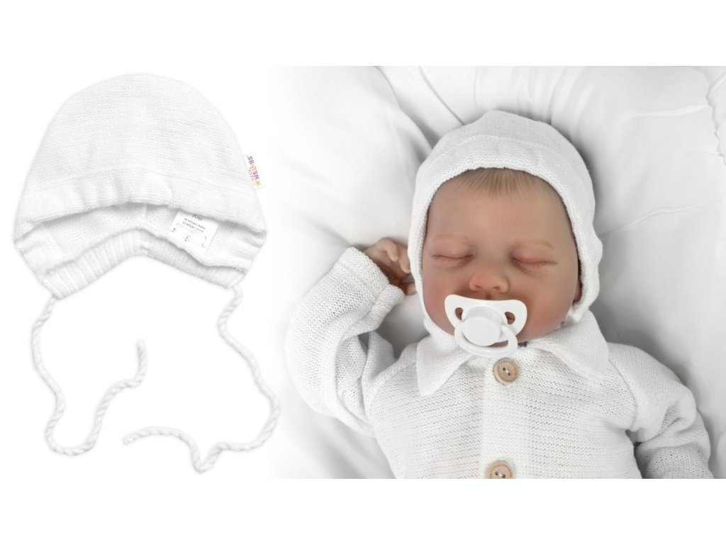 Pletená čepička na zavazování bonetka Boy, Hand Made Baby Nellys, bílá
