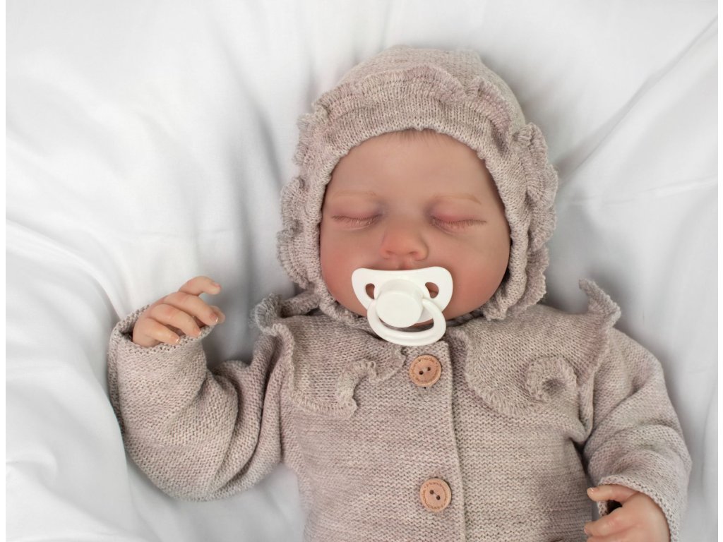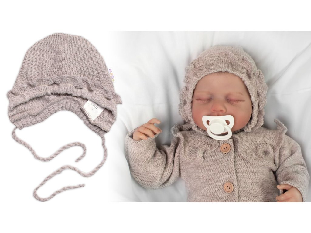 Pletená čepička na zavazování bonetka Girl, Hand Made Baby Nellys, béžová