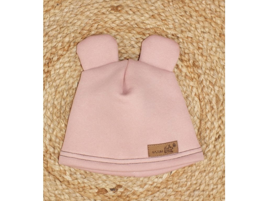 Teplá dětská čepice Kazum, bavlněná s oušky, pudrová