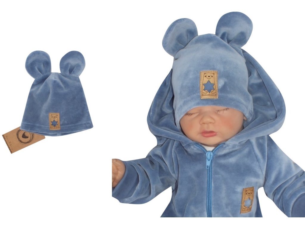 Z&Z Velurová, semišková čepička s oušky, modrá