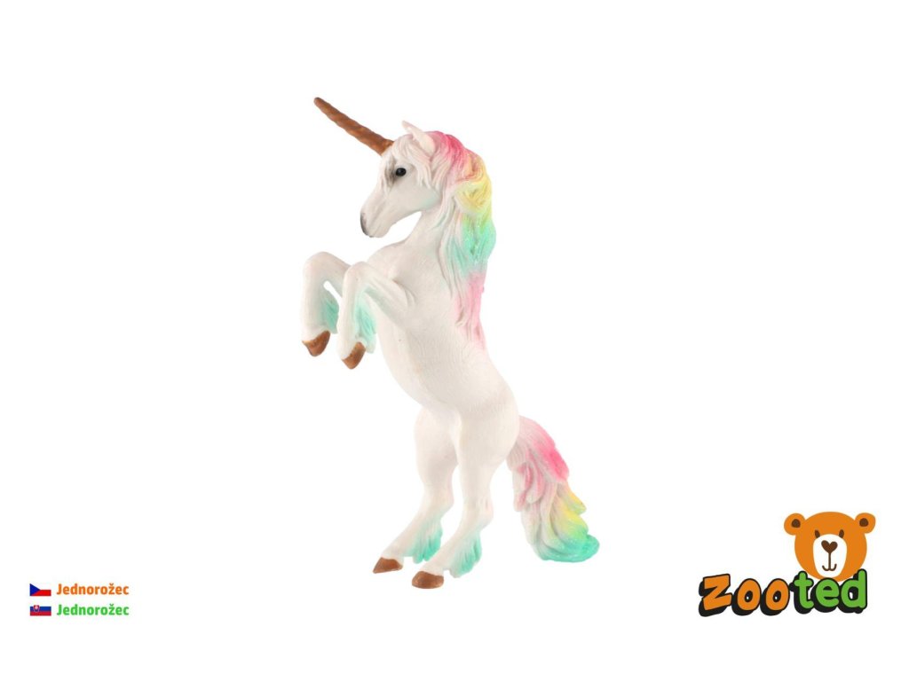 Jednorožec bílý s duhovou hřívou zooted plast 18cm