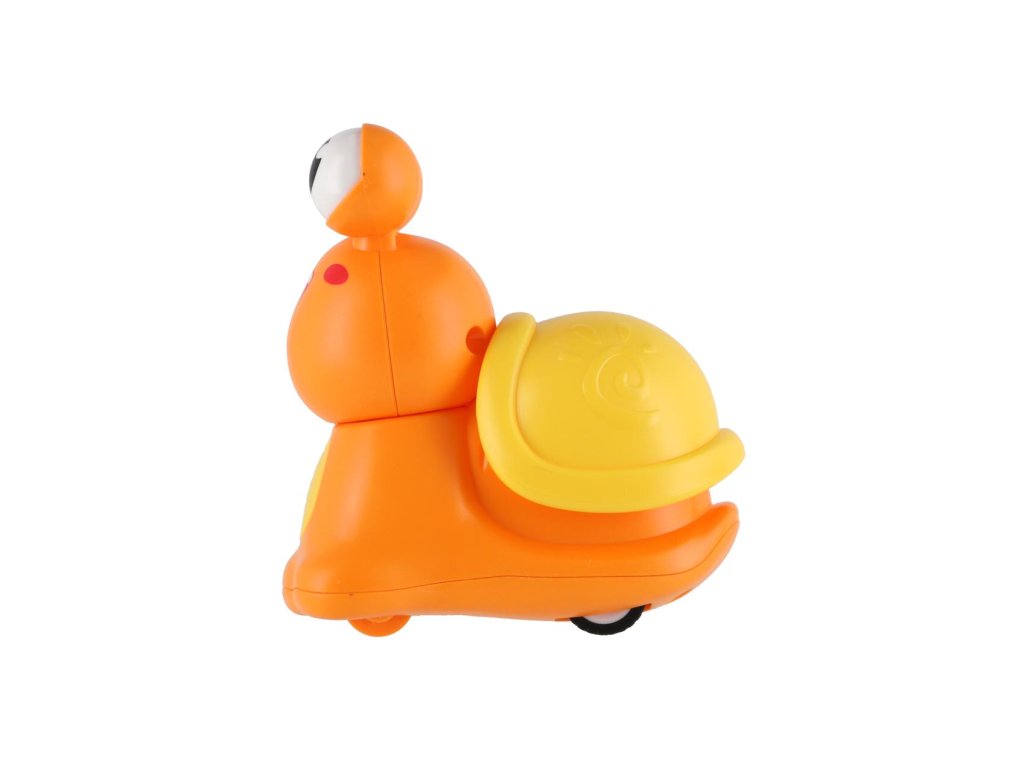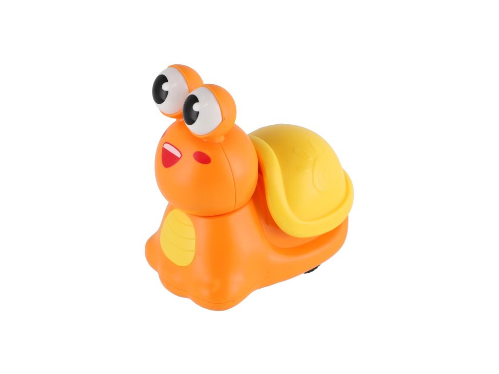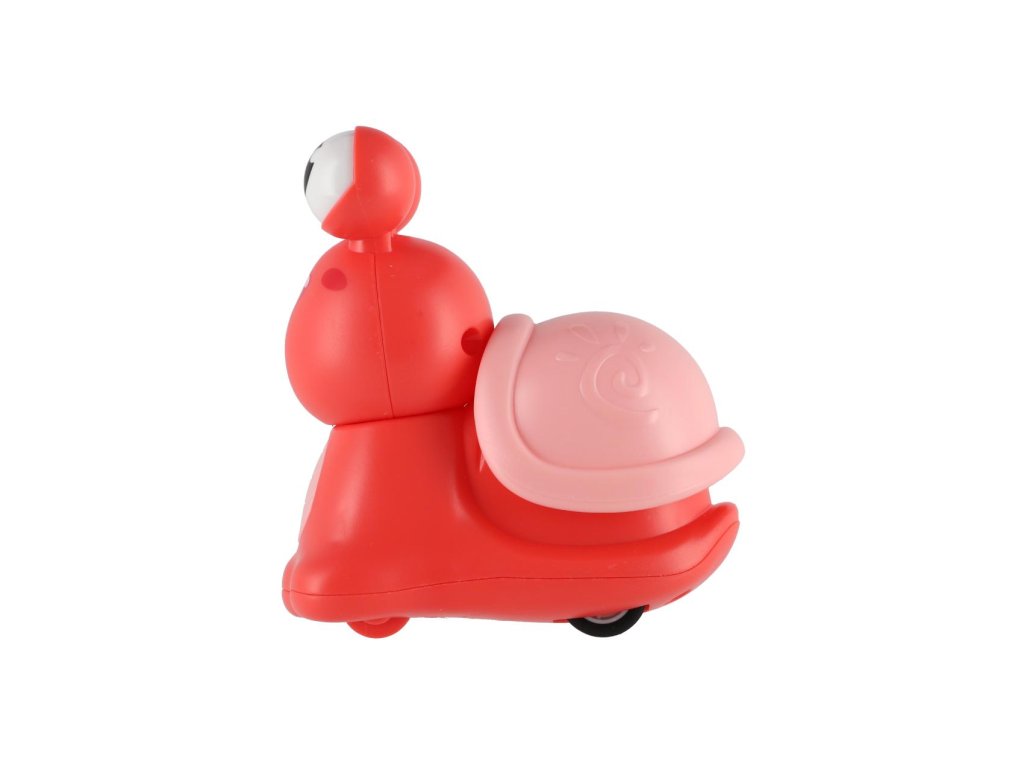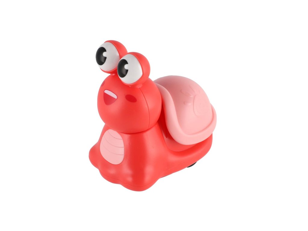 Šnek, kterýmu stačí stisknout ulitu a začne před tebou ujíždět. Šnek je velikosti 8 cm a je na setrvačník. Vybrat si můžete ze 3 barev.