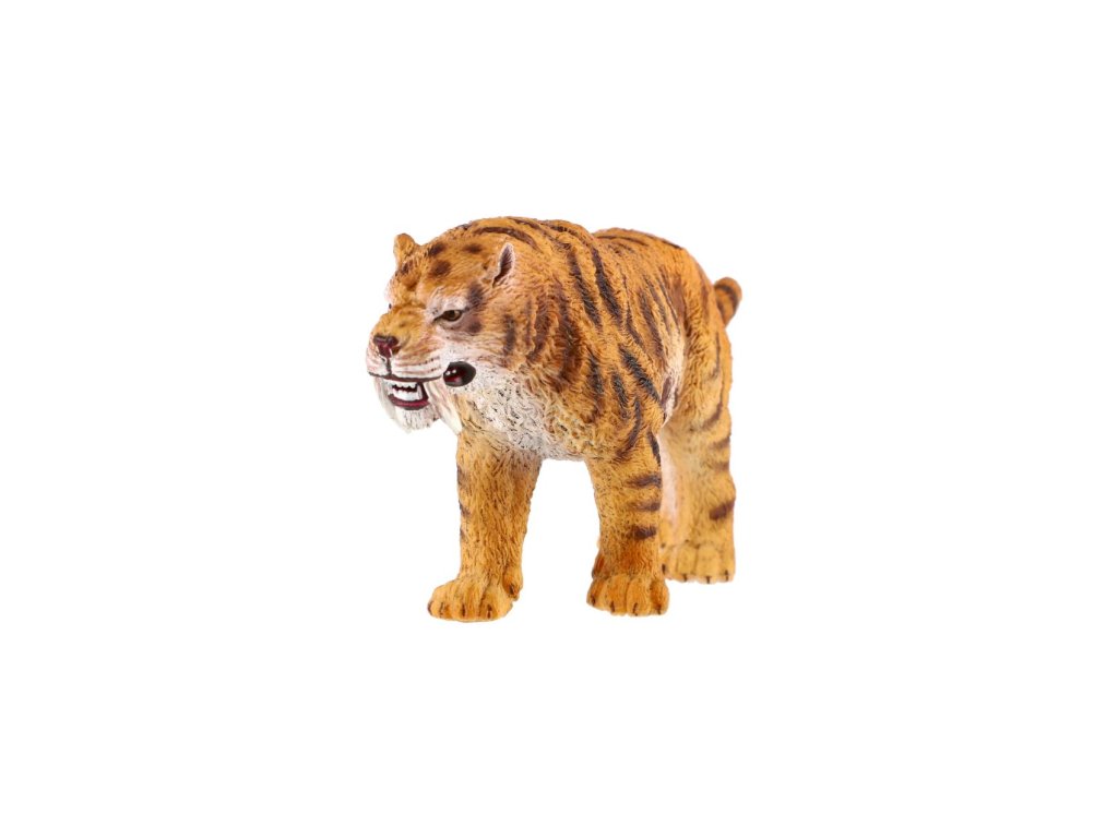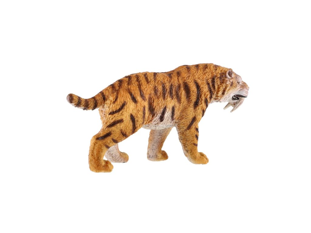 Tygr šavlozubý, také známý jako Smilodon, patřil k výjimečným šelmám jehož fosilní nálezy byly objeveny v Americe. Objevil se před asi 2,5 milionu lety, vymřel před asi10 000 lety. Jeho výrazným rysem byly dlouhé špičáky, které byly skvělým nástrojem pro lov. Tygr šavlozubý byl uzpůsobený na lov větších kořisti a jeho silné tělo a silné končetiny mu umožňovaly efektivně pronásledovat svou oběť. Přestože tygr šavlozubý není dnes mezi námi, jeho jedinečná morfologie a lovecké schopnosti jsou fascinujícím objektem paleontologického zkoumání a zůstávají důležitou součástí historie života na Zemi.