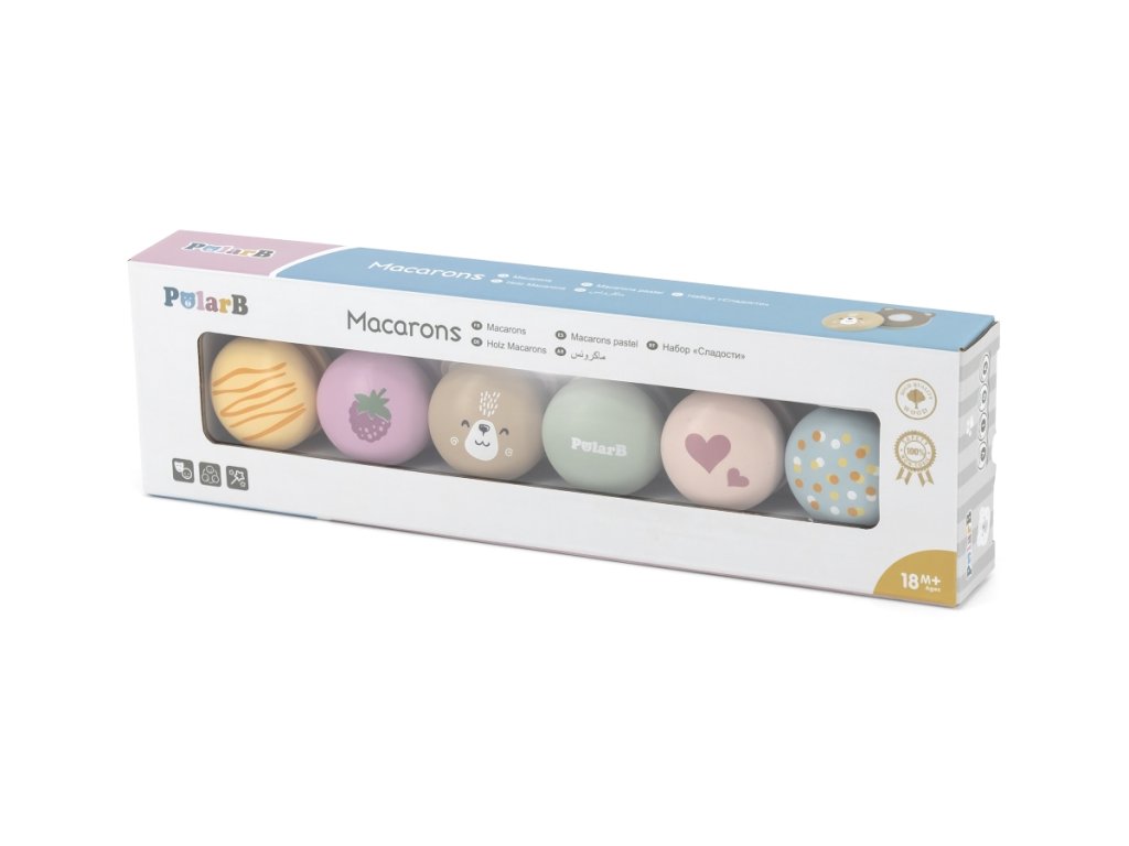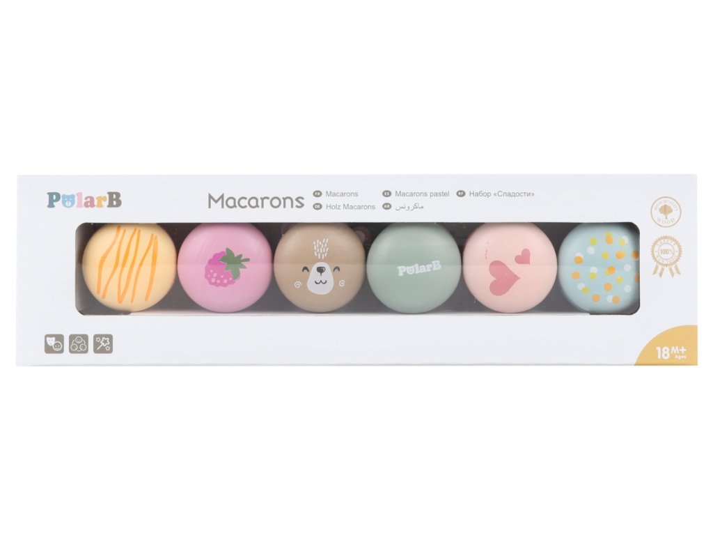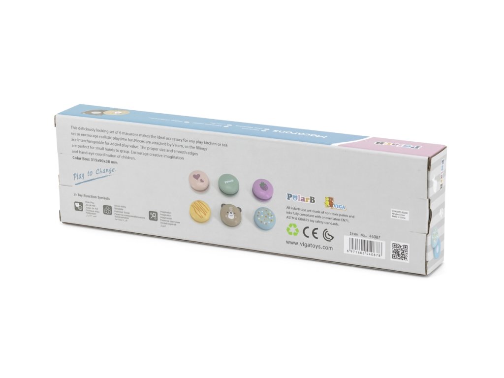 Tato lahodně vypadající sada 6 makronek je ideálním doplňkem do každé kuchyňky nebo čajové soupravy, která podpoří realistickou zábavu při hraní. Dílky jsou připevněny suchým zipem, takže náplně jsou zaměnitelné pro přidanou hodnotu hry. Správná velikost a hladké hrany jsou ideální pro malé úchopy. Podpořte kreativní představivost a koordinaci rukou a očí dětí. Rozměr balení cca 31,5 x 9,5 x 4 cm. Věk 18m+Doplňkové parametry