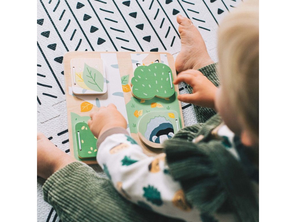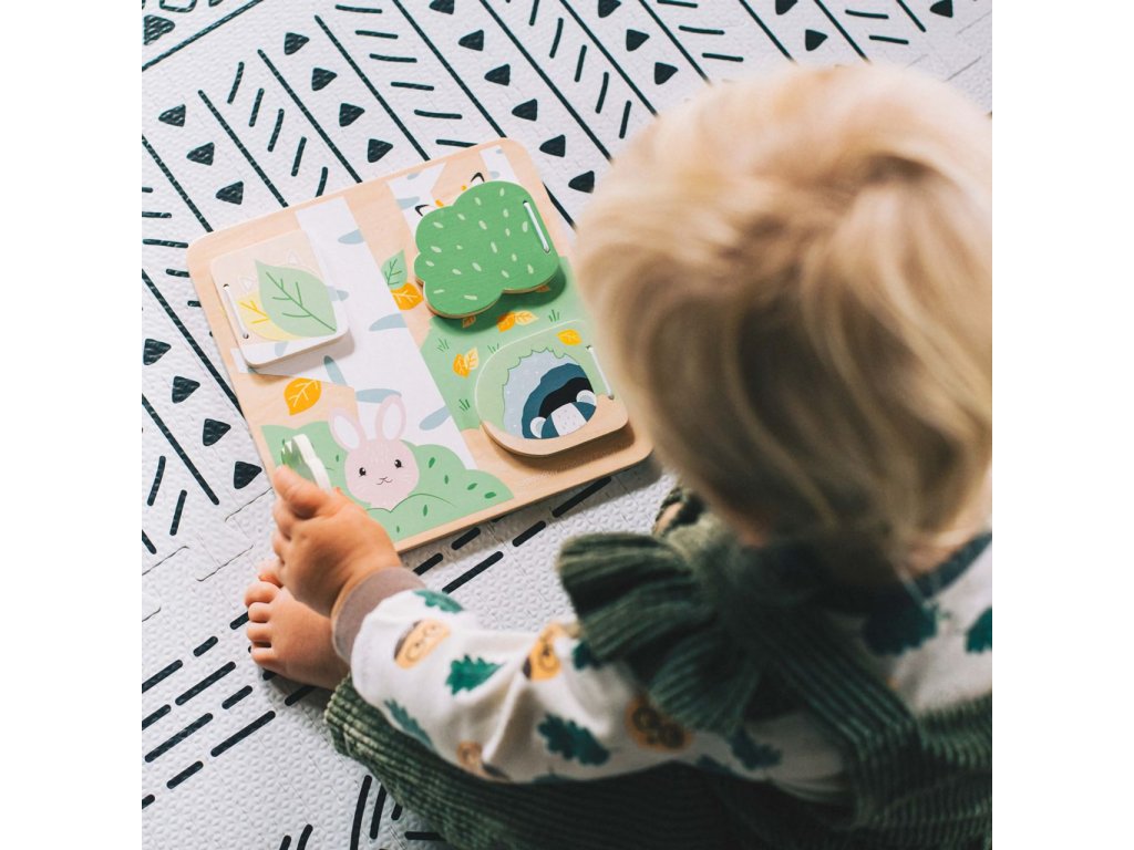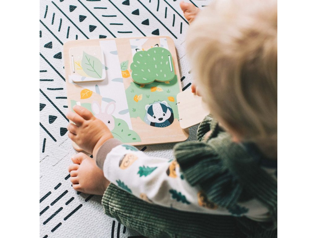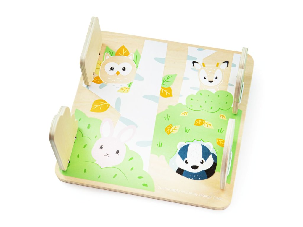 Kdo se schovává a žije v lese? Odhalí Vaši nejmenší sovu, kolouška, zajíčka i jezevce? Jedinečná motorická hračka, s níž mohou děti odhalovat roztomilá zvířecí tajemství lesa. Zvířátka se ukrývají za dvířky pružně zajištěnými gumičkami, které usnadňují dětem manipulaci. Poháněny zvědavostí je děti mohou otevírat, a přirozeně tak rozvíjet svou zručnost. Přátelské zvířecí obličeje budou chtít vidět znovu a znovu! Odkrývačka je vyrobena z kvalitního, certifikovaného dřeva získaného z udržitelných zdrojů a lakována výhradně nezávadnými barvami. Hlavní vlastnosti: 4 pohyblivá dvířka s různými obrázkyatraktivní a odolné zpracovánívyrobeno ze 100% FSC® dřeva Značka a certifikát FSC® (Forest Stewardship Council) zaručuje, že dřevo, ze kterého byl produkt vyroben, nebylo vytěženo nelegálně a pochází z lesů obhospodařovaných šetrným či přírodě blízkým způsobem, ve kterém jsou dodržovány přísné environmentální a sociální požadavky. Značka FSC® na výrobku znamená, že svým nákupem pomáháte chránit lesy a podporujete šetrné, odpovědné či přírodě blízké hospodaření, díky kterému jsou naše lesy stabilnější, zdravější, mají přirozenou druhovou skladbu a lépe odolávají negativním následkům klimatických změn.Doplňkové parametry