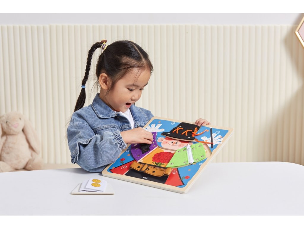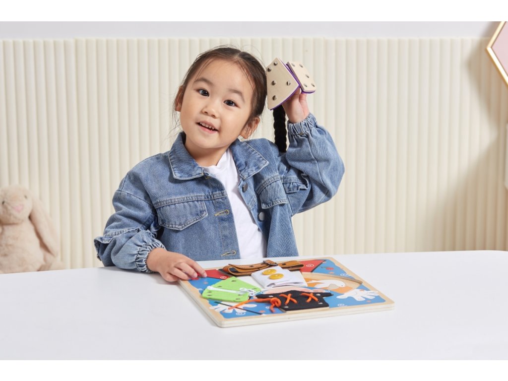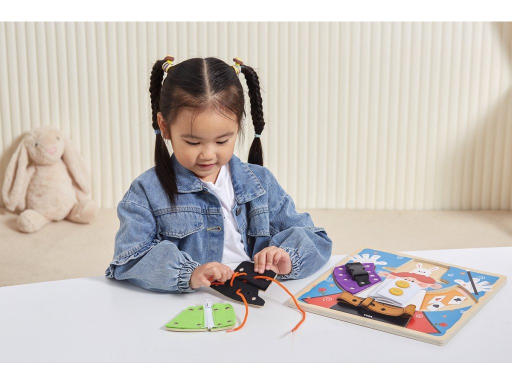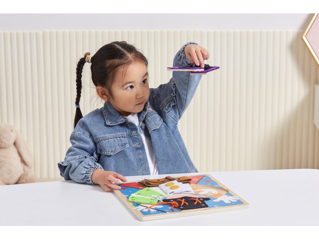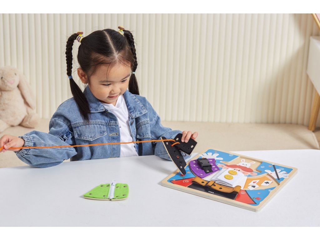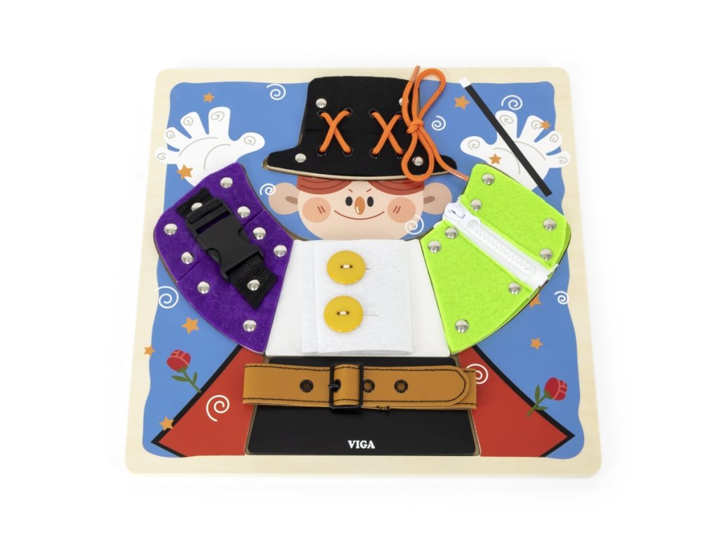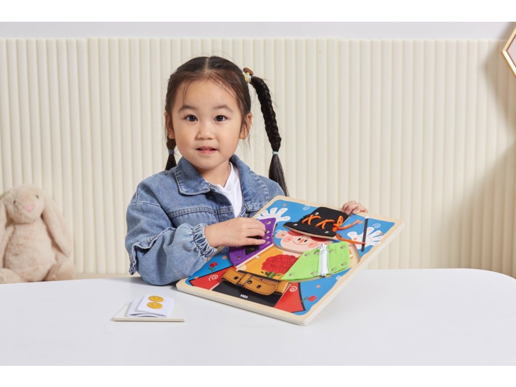 Sada různých typů na zručnost - zapínání,šněrování., je určená pro malé dětské prstíky, které na nich mohou potrénovat svoji obratnost. Přednosti: rozvíjí jemnou motoriku, trénuje logické uvažování a koordinaci pohybů. Rozměr desky cca 30 x 30 x 1 cm. Věk 18m+Doplňkové parametry