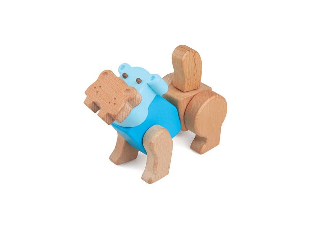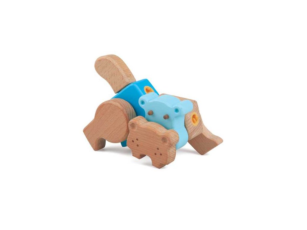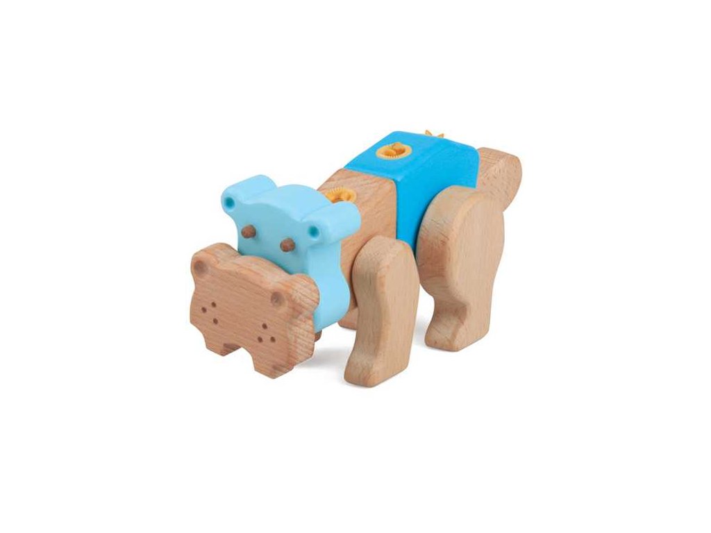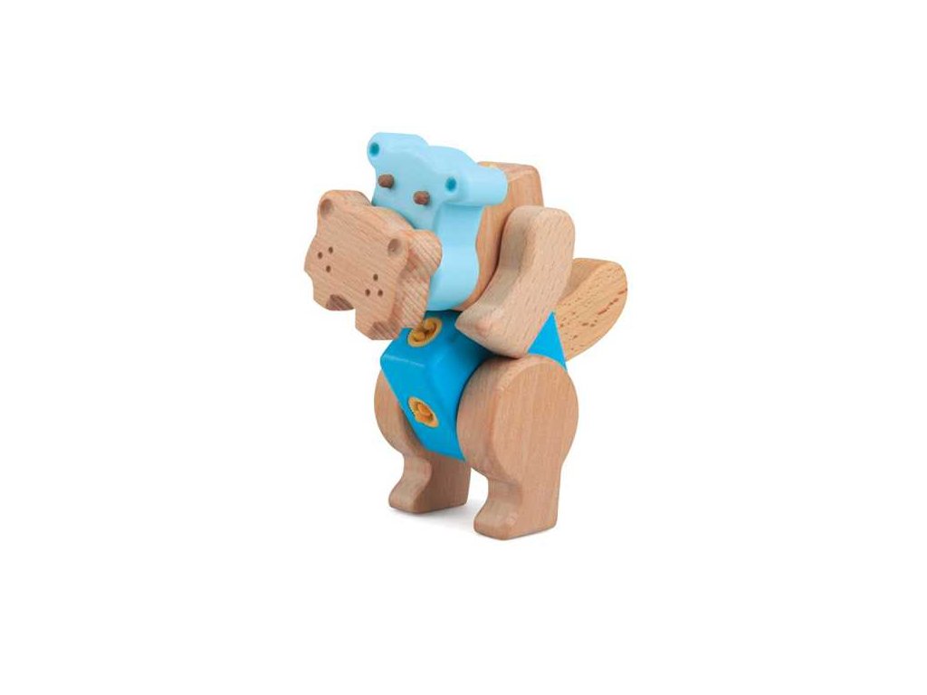 Jednoduchá, zábavná, pohyblivá a interaktivní stavebnice dřevěného zvířátka. Sestavte své oblíbené zvířátko, měňte jeho postoj nebo jej transformujte do úplně jiné podoby dle vlastní fantazie. Vyberte si z široké palety druhů a barev. Všechny součásti lze volně spojovat s dalšími díly ostatních zvířátek, měnit hlavy, končetiny atd. Hračky můžete transformovat patentovaným, jednoduchým, pevným a odolným spojovacím systémem „Click'n Turn!“ (klikni a otoč). Tímto způsobem rozvíjejí dětskou představivost i vkus. Jsou vyrobeny z tvrdého masivního dřeva, opatřeny zaoblenými hranami a rohy, natřeny nezávadnými barvami vhodnými pro děti a ošetřeny rostlinným olejem šetrným k přírodnímu prostředí. Součástí balení je uživatelská příručka.