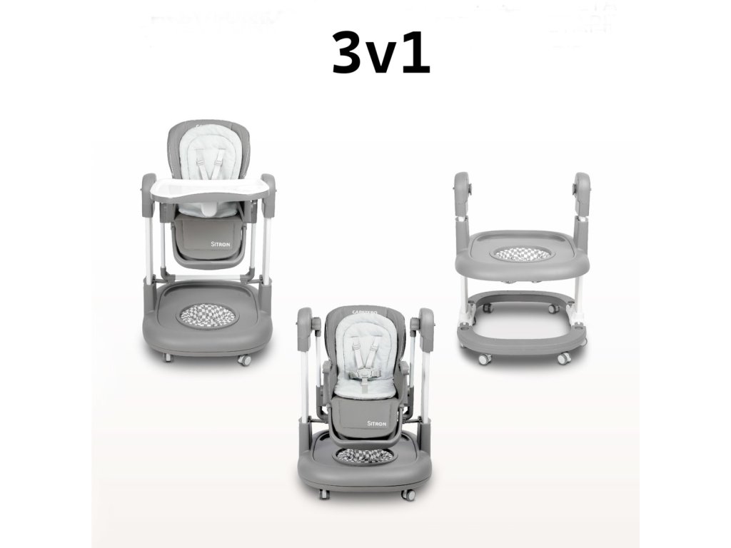 Dětská židlička Sitron 3v1 s funkcí houpačky a chodítka.Křesílko 3v1. Je ideálním řešením pro rodiče, kteří hledají praktický, prostorově úsporný a multifunkční produkt.
