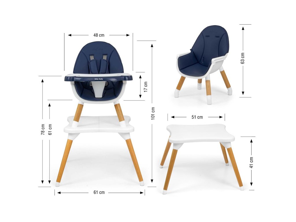 Jídelní židlička Milly Mally 2v1 Malmo navy