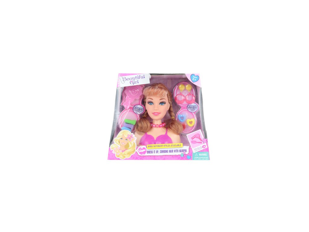 Česací hlava (s doplňky hřeben, gumičky, skřipečky a náušnice)