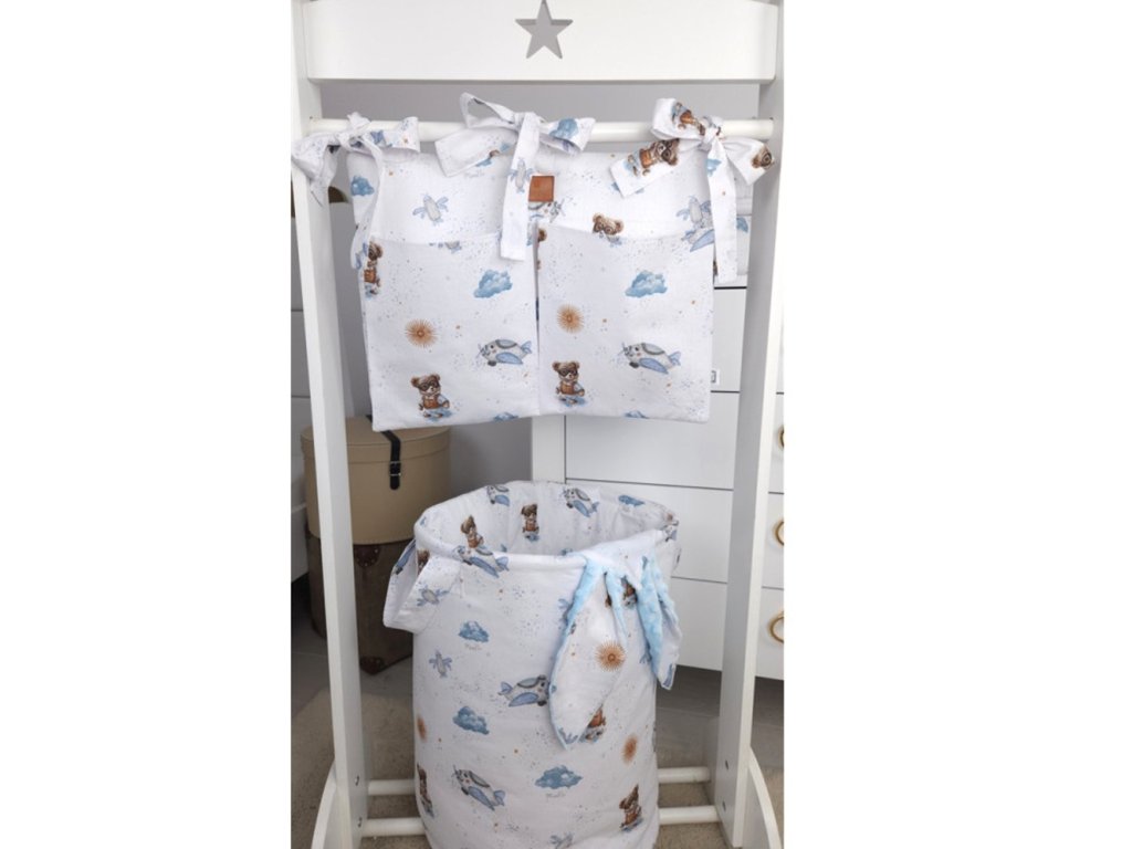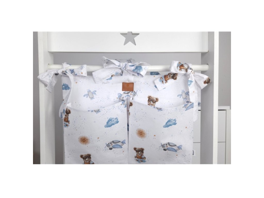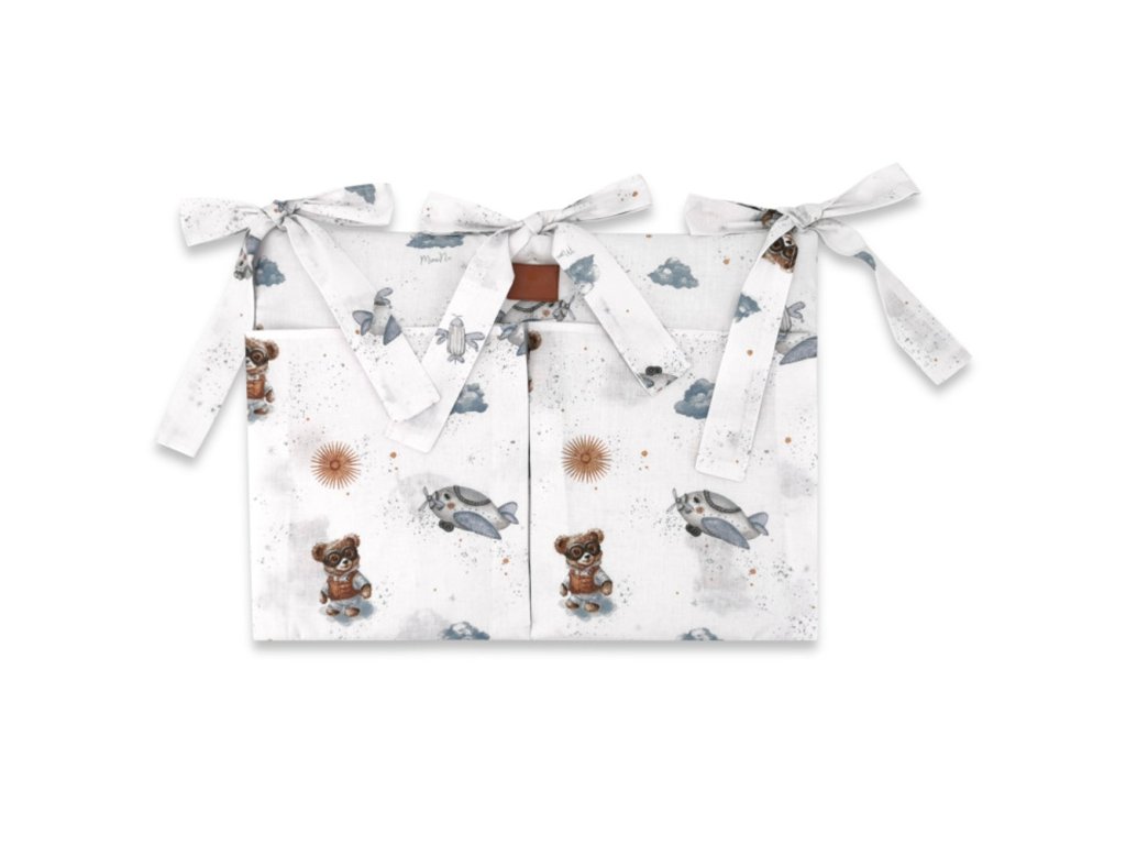 Kapsář na postýlku, bavlna, Méďa pilot - bílá, modrá