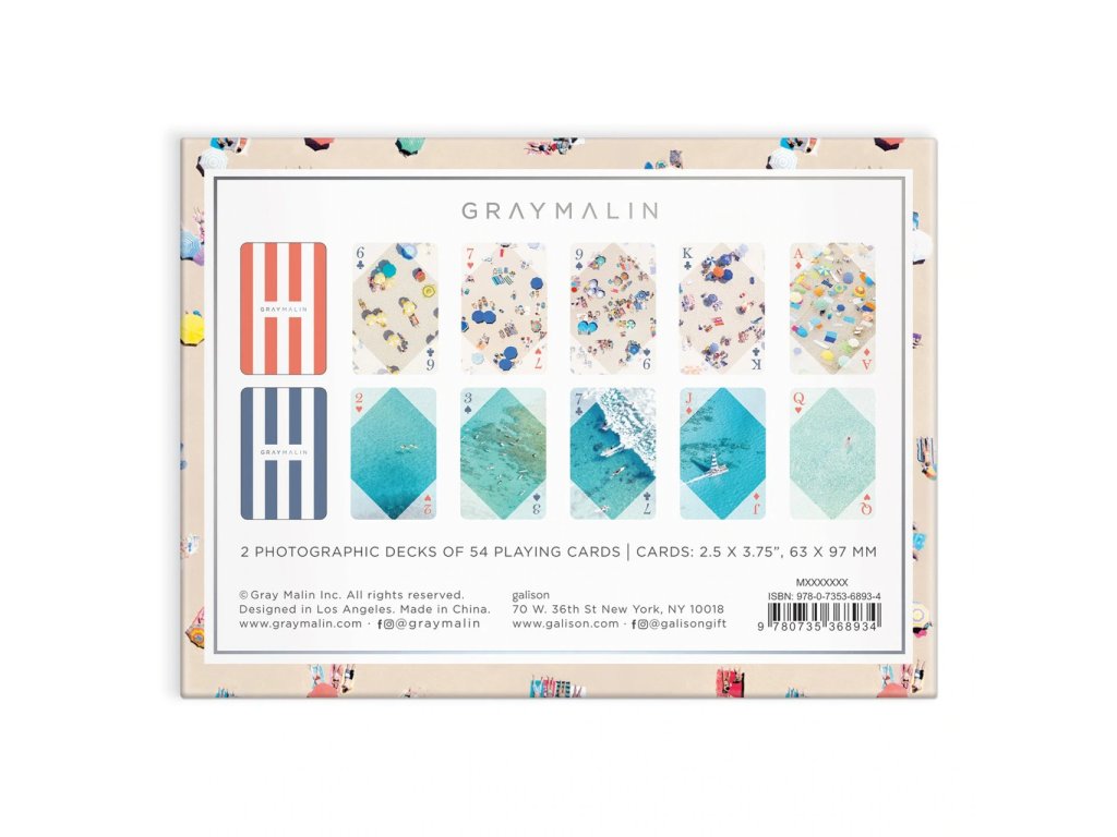 Sada originálních kanastových (žolíkových) hracích karet v luxusní kartonové krabičce. Karty i jejich obal zdobí umělecké, letecké snímky pláže, které do Vaší hry vnesou okouzlující atmosféru letní pohody a slunce. Hlavní vlastnosti: 2 balíčky, 108 karet celkemumělecké fotografie, autor Gray Malinpraktické a luxusní baleníDoplňkové parametry