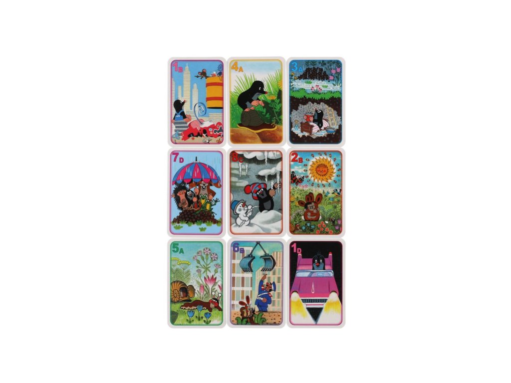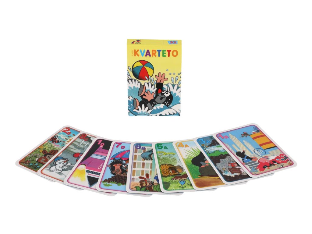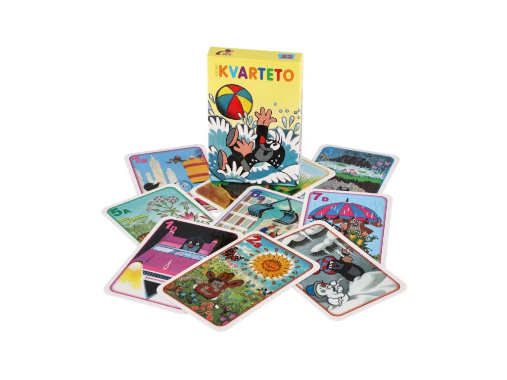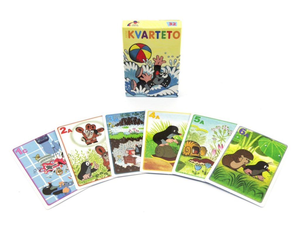 Kvarteto s motivem Krtka a jaho kamarádů.Hra je v papírové krabičce 6x9 cm.